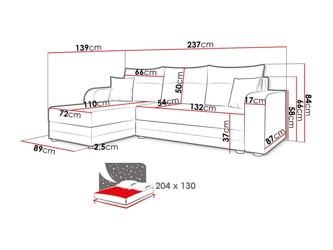 Sofá rinconero Memphis 112, Gris, Función de descanso, Almacenaje, 237x139x84cm