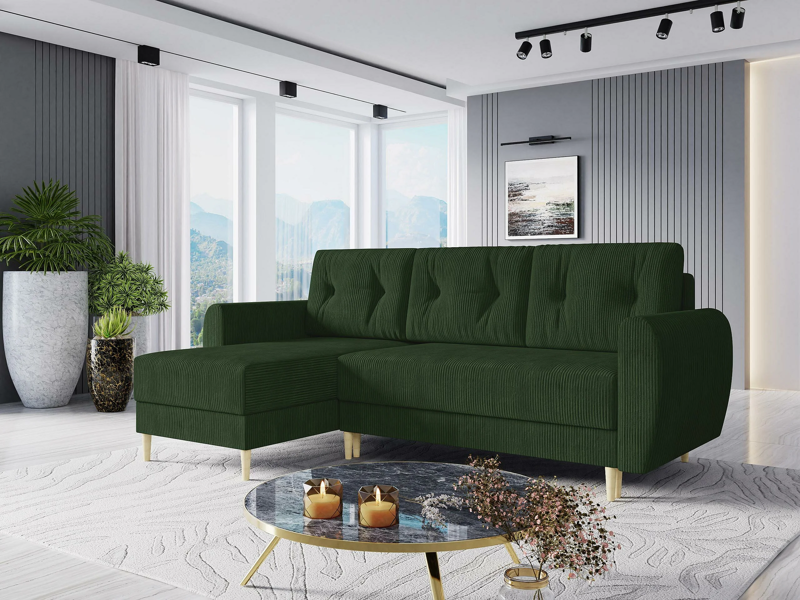 Sofá rinconero Memphis 139, Verde, Función de descanso, Almacenaje, 234x139x95cm