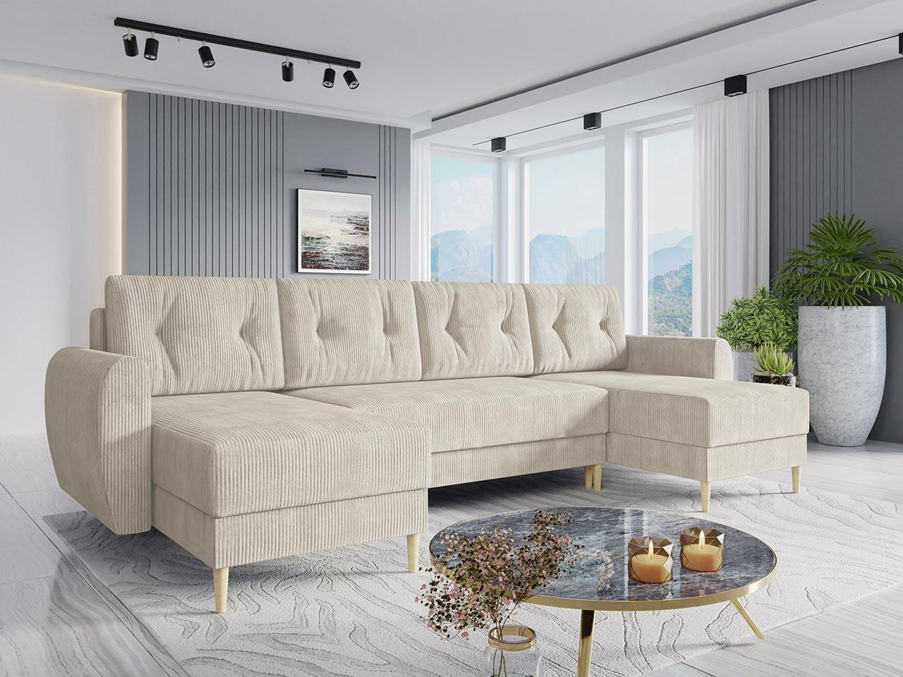 Sofá rinconero Memphis 139, De color marrón claro, Función de descanso, Almacenaje, 234cm
