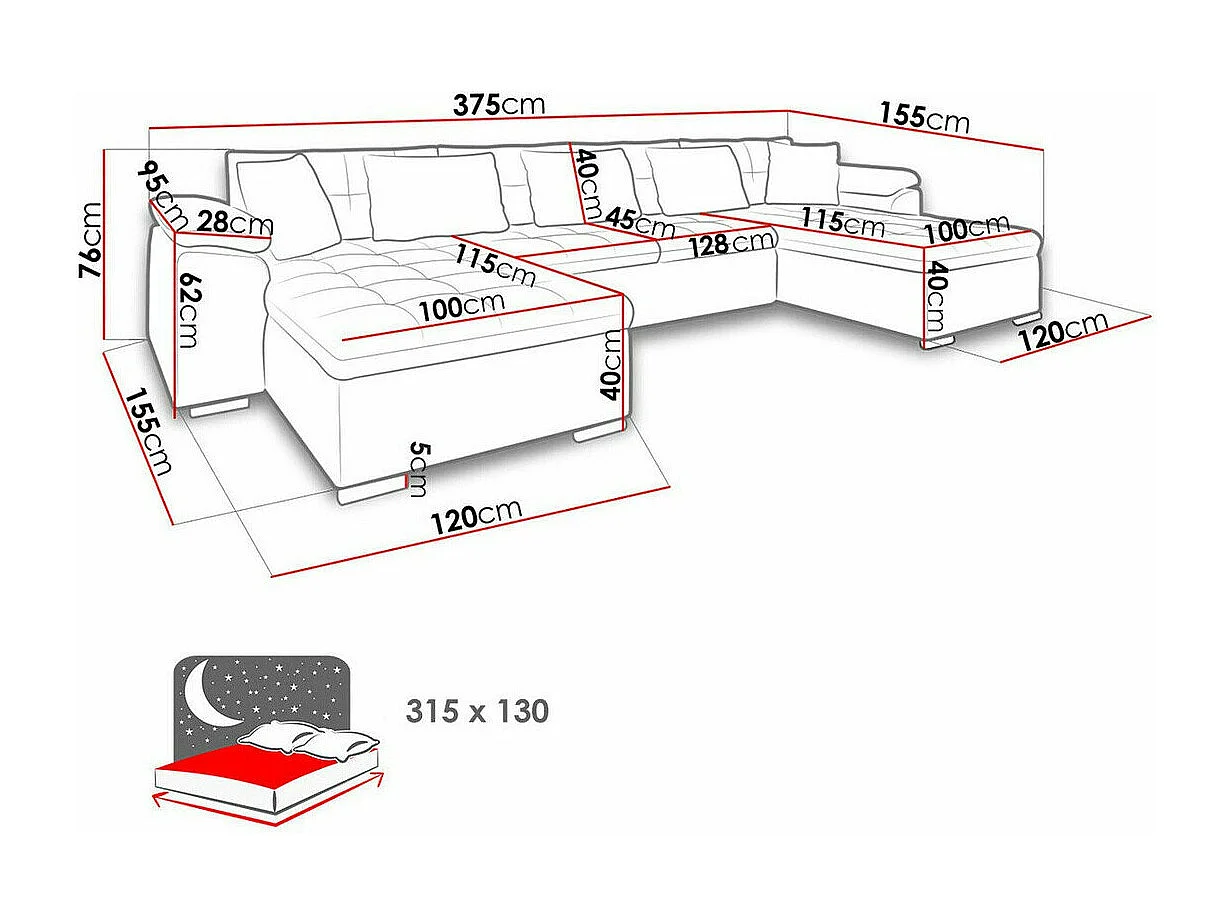 Sofá rinconero Comfivo 111, Rosa, Función de descanso, 375x155x76cm