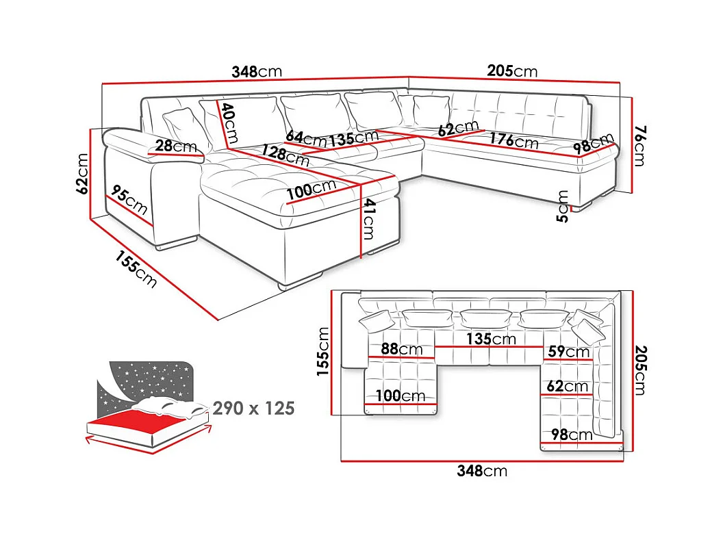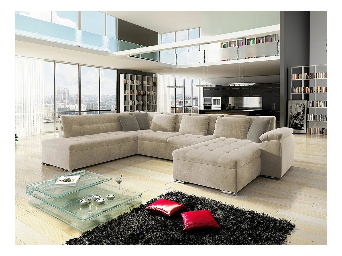 Sofá rinconero Comfivo 128, De color marrón claro, Función de descanso, 348x205x76cm