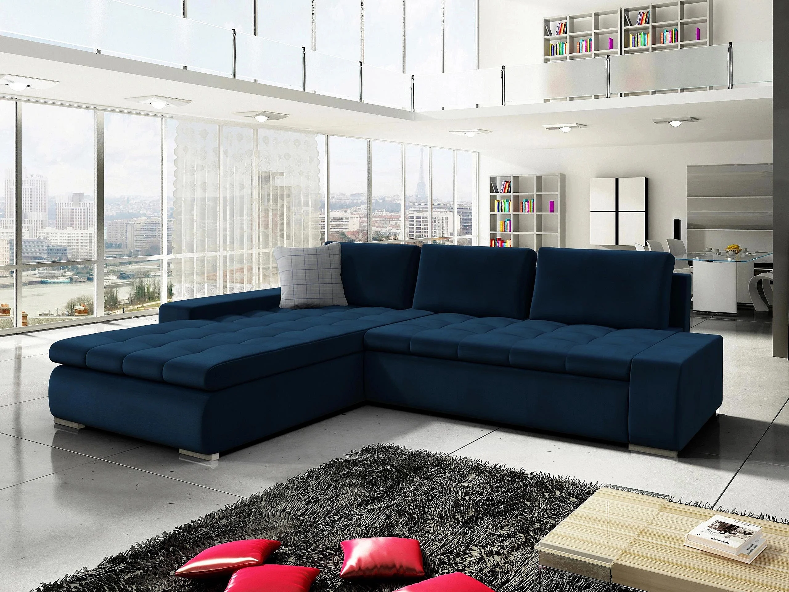 Sofá rinconero Comfivo 147, Azul, Función de descanso, Almacenaje, 302x213x80cm