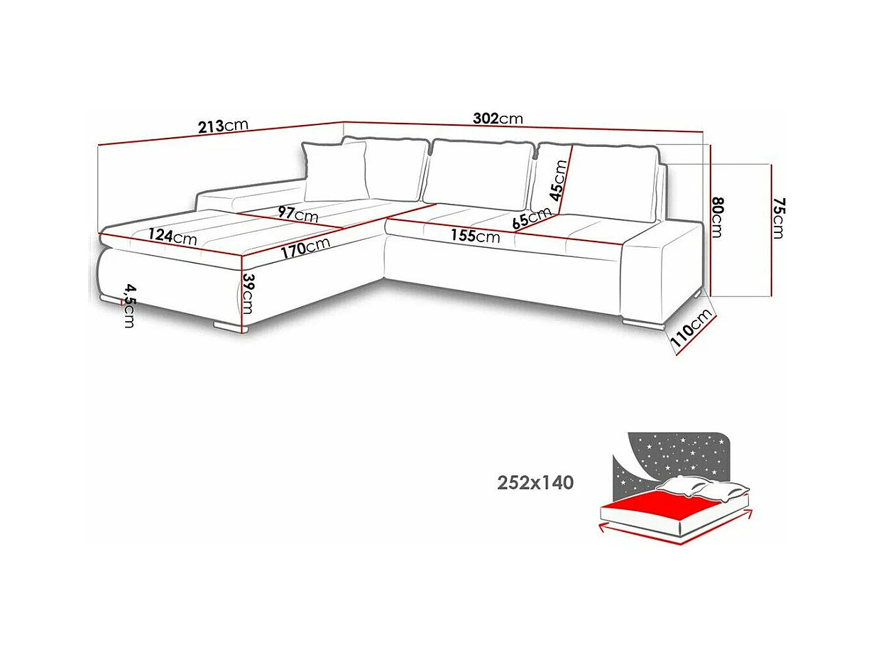 Sofá rinconero Comfivo 147, Gris, Función de descanso, Almacenaje, 302x213x80cm