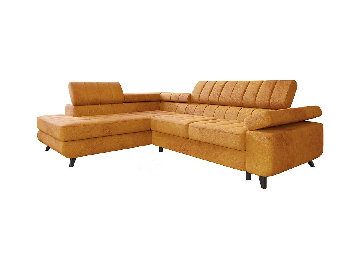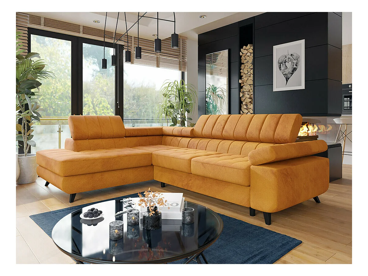 Sofá rinconero Comfivo 207, Amarillo, Función de descanso, Almacenaje, 264x203x73cm