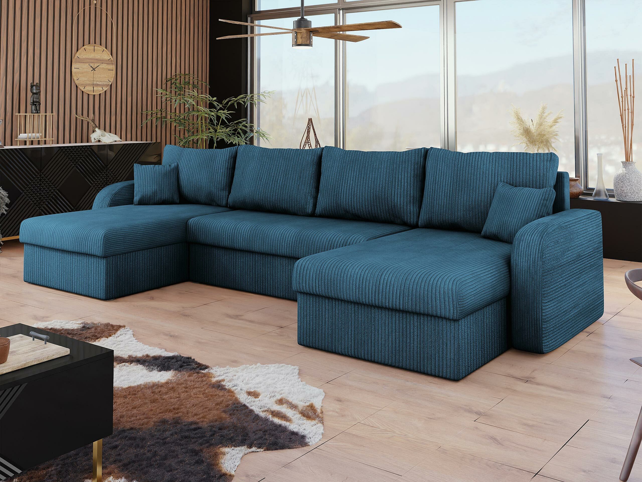 Sofá rinconero Comfivo 147, Azul, Función de descanso, Almacenaje, 302x213x80cm