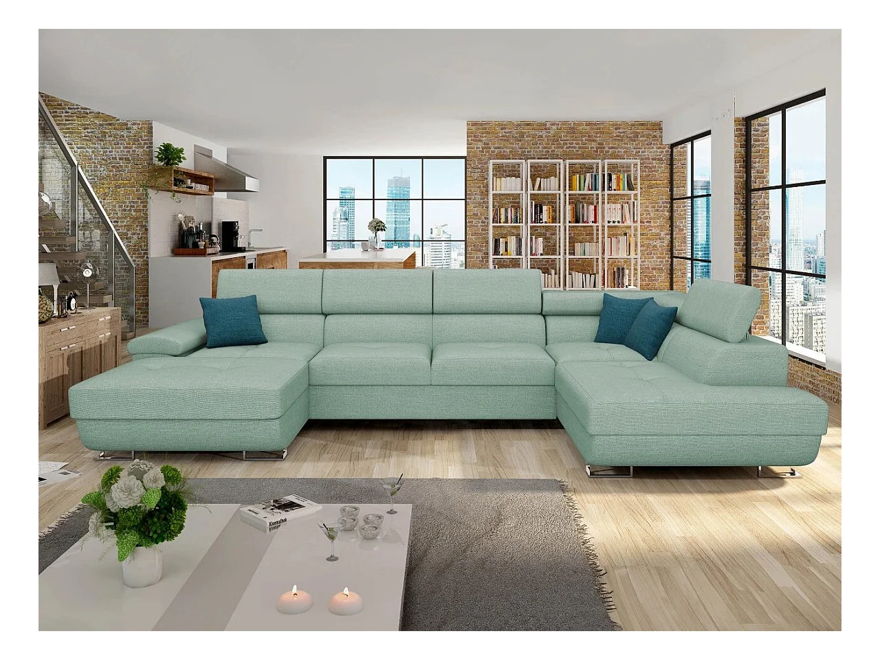 Sofá rinconero Comfivo 241, Turquesa, Función de descanso, Almacenaje, 345x202x71cm