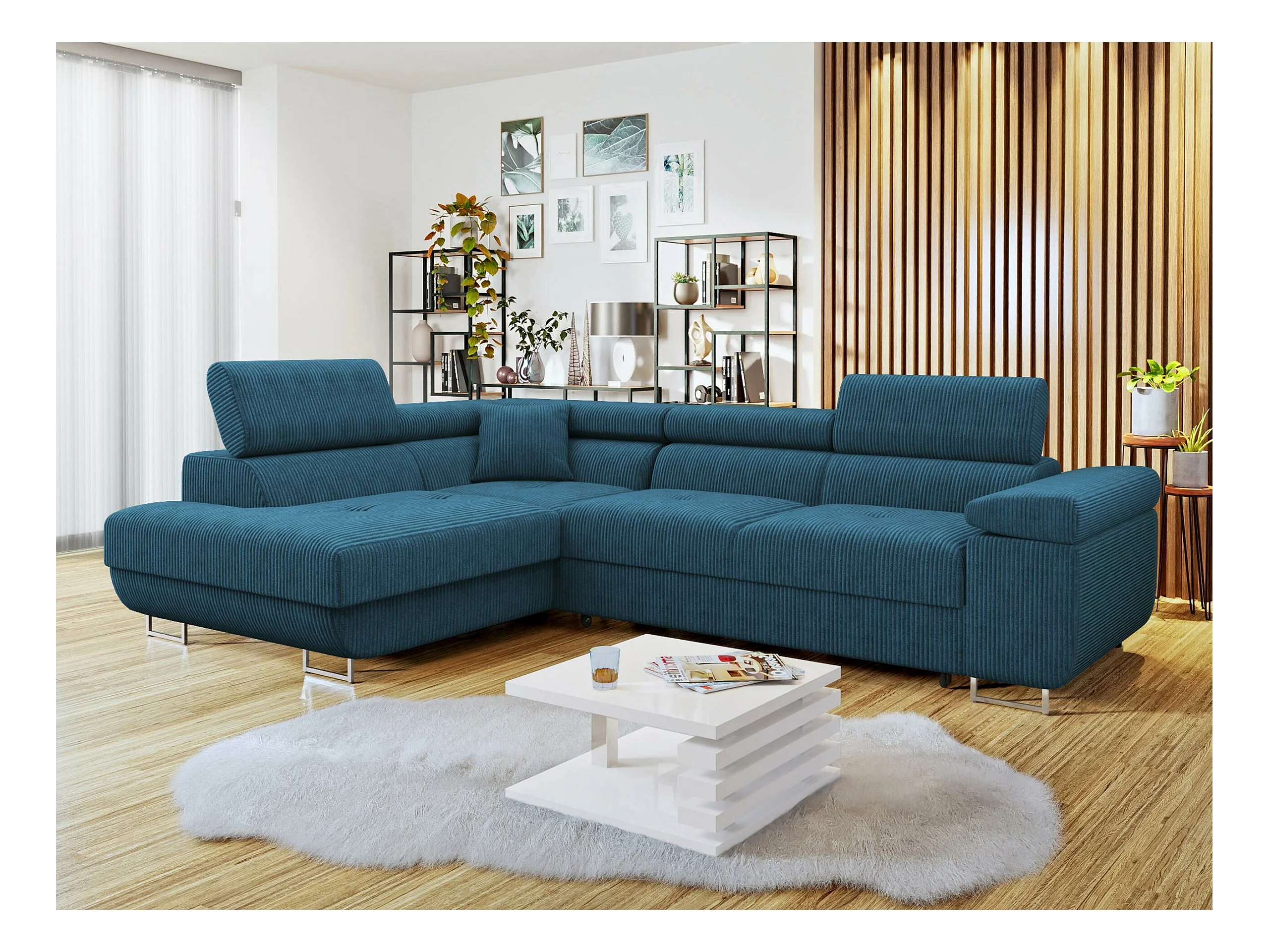 Sofá rinconero Comfivo 306, Azul, Función de descanso, Almacenaje, 253x188x71cm