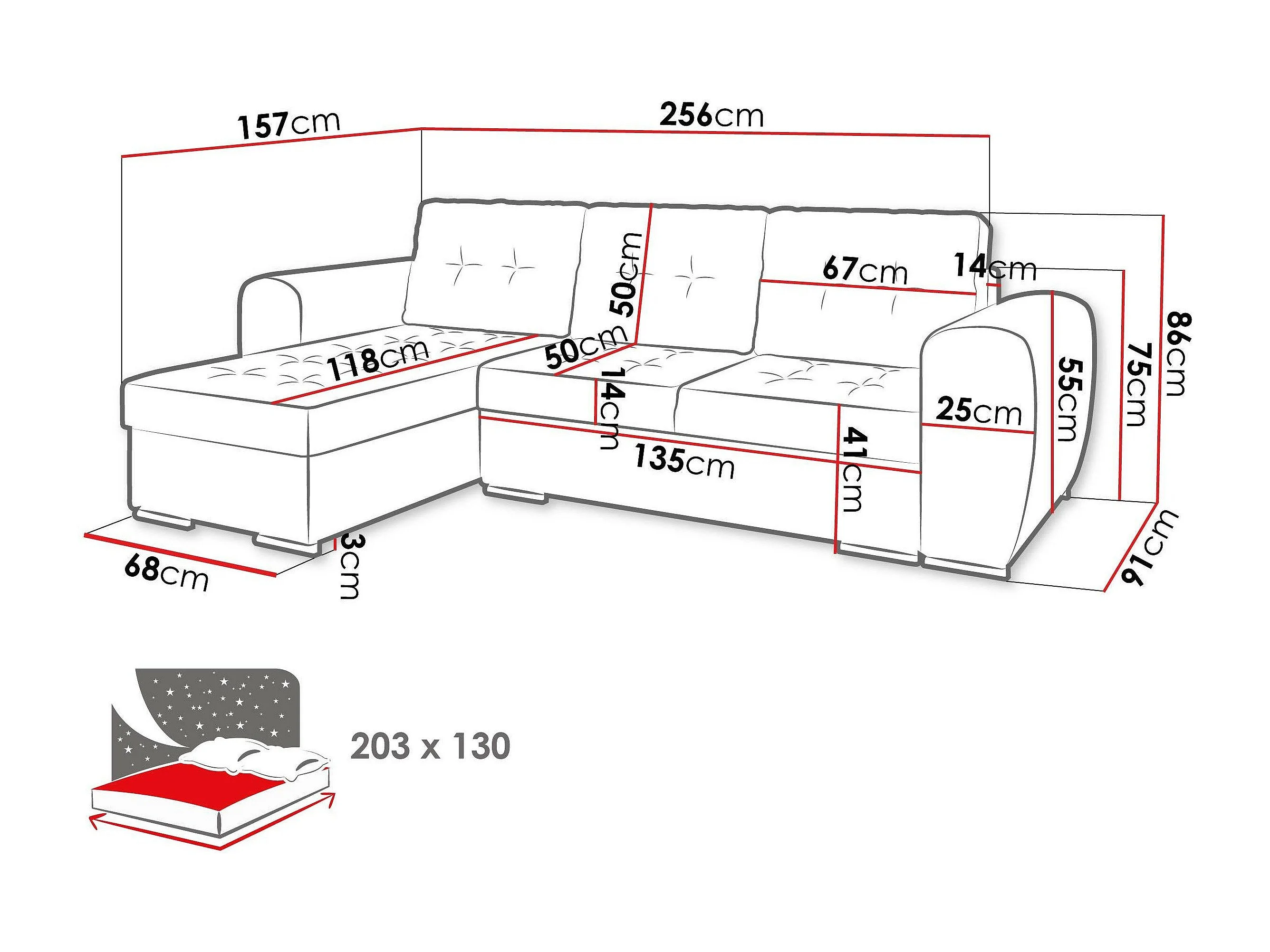 Sofá rinconero Muncie 109, Marrón, Función de descanso, Almacenaje, 256x157x86cm