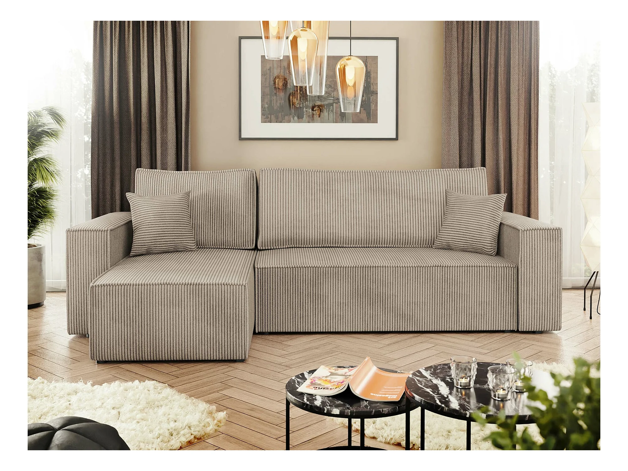 Sofá rinconero Shelton 100, De color marrón claro, Función de descanso, Almacenaje, 244cm
