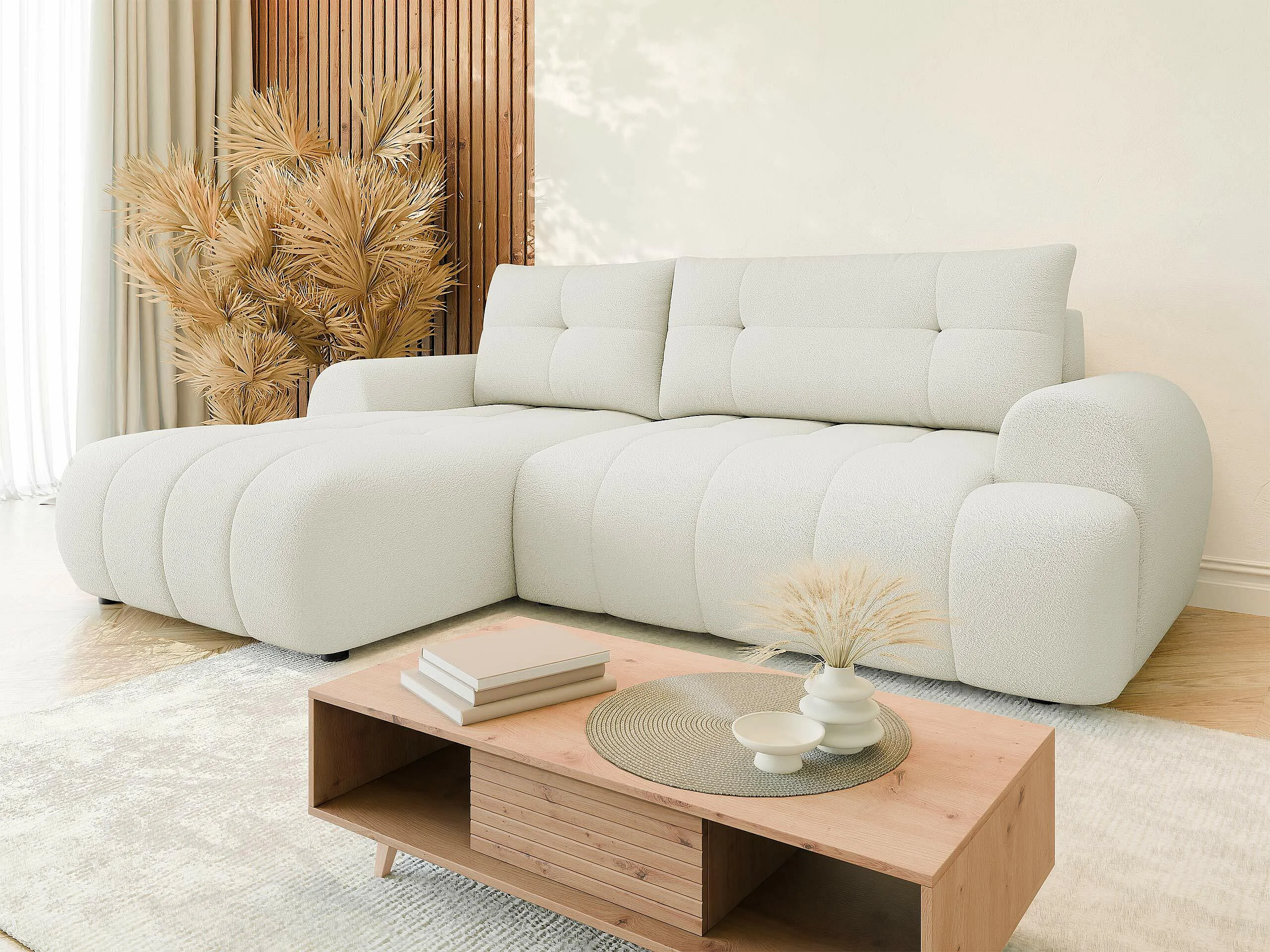 Sofá rinconero TrendyNest 104, De color marrón claro, Función de descanso, Almacenaje,