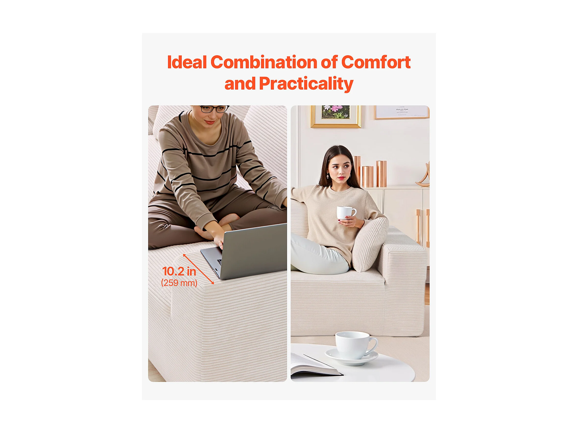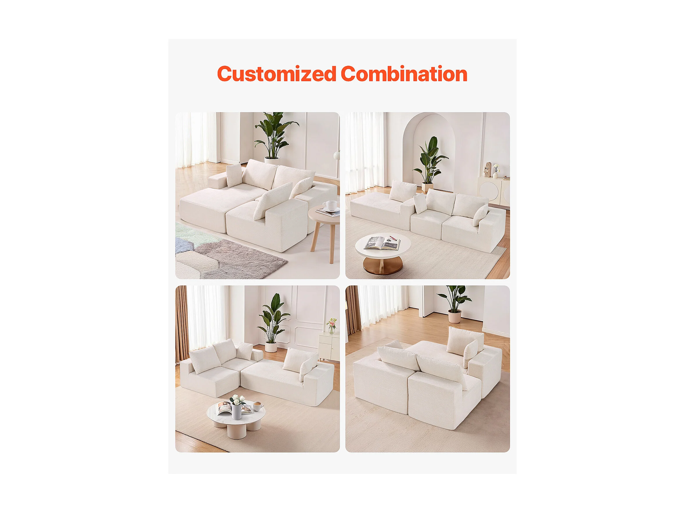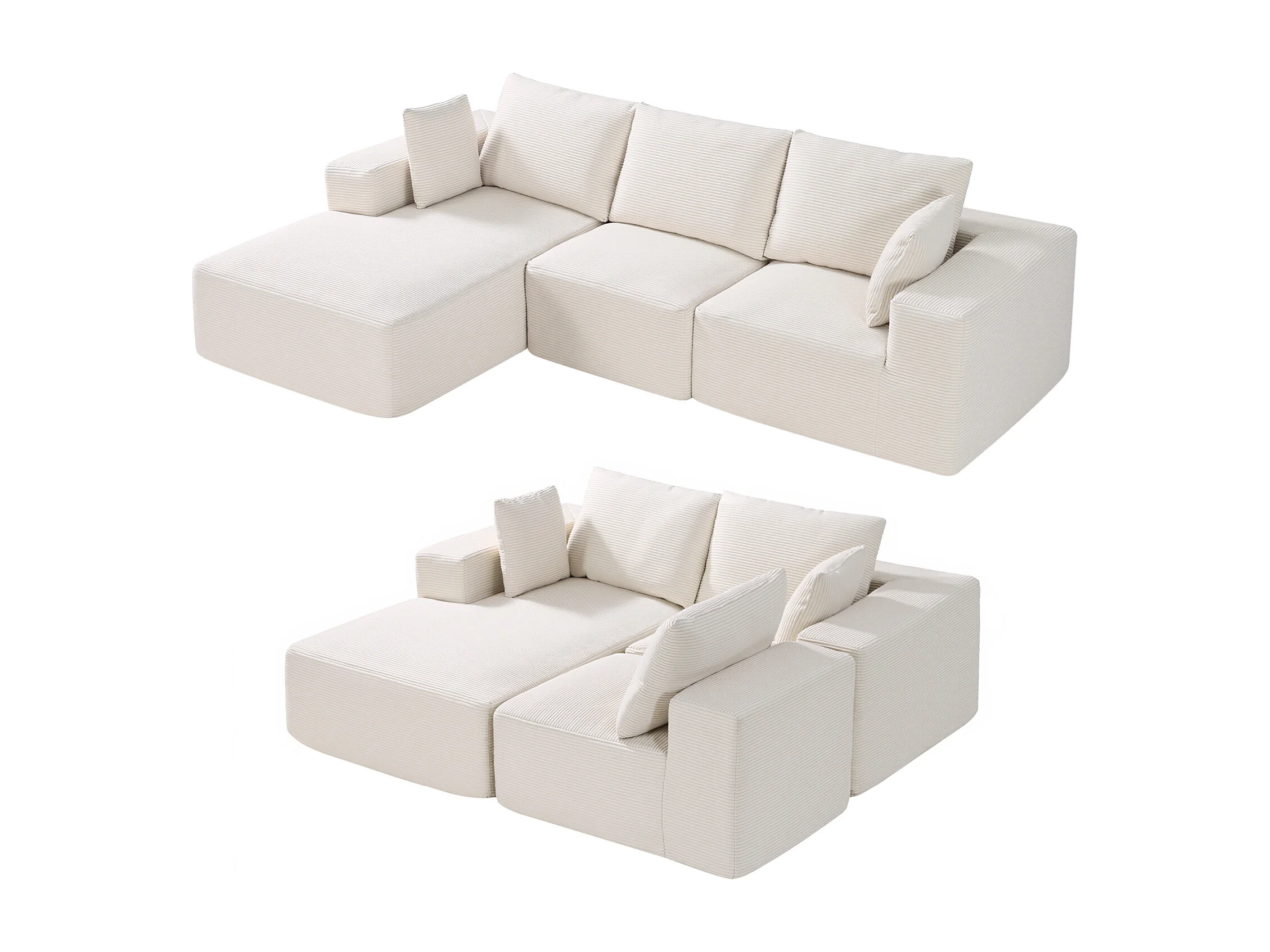 Sofá Seccional Modular SucceBuy en Forma de L con Chaise Longue y Cojín Beige