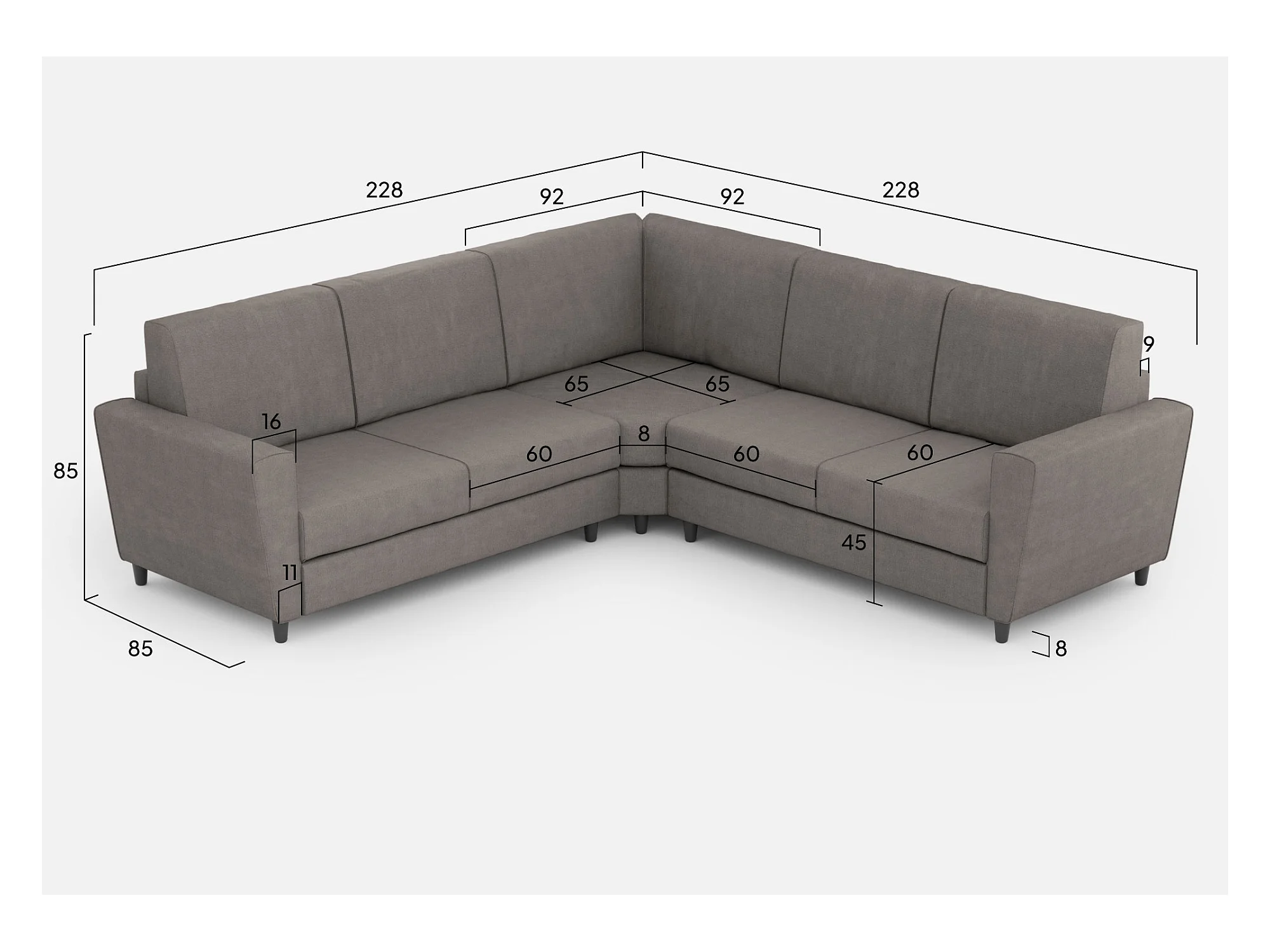 Sofá Yasel de 2 plazas (dos plazas de 60 cm) + rincón + sofá de 2 plazas (dos plazas de 60 cm) dimensiones exteriores L.228x228 gris