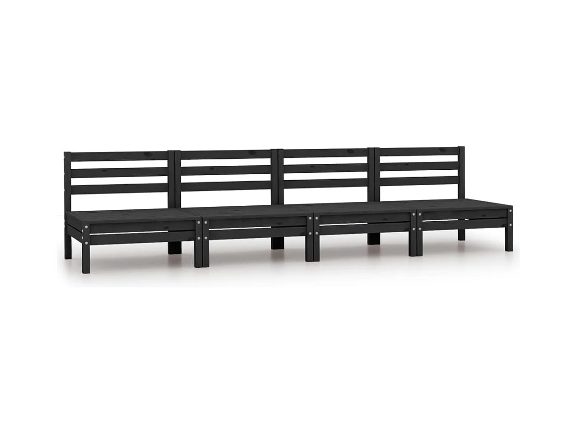 Sofás central de jardín 4 unidades negro madera maciza de pino KOW69628
