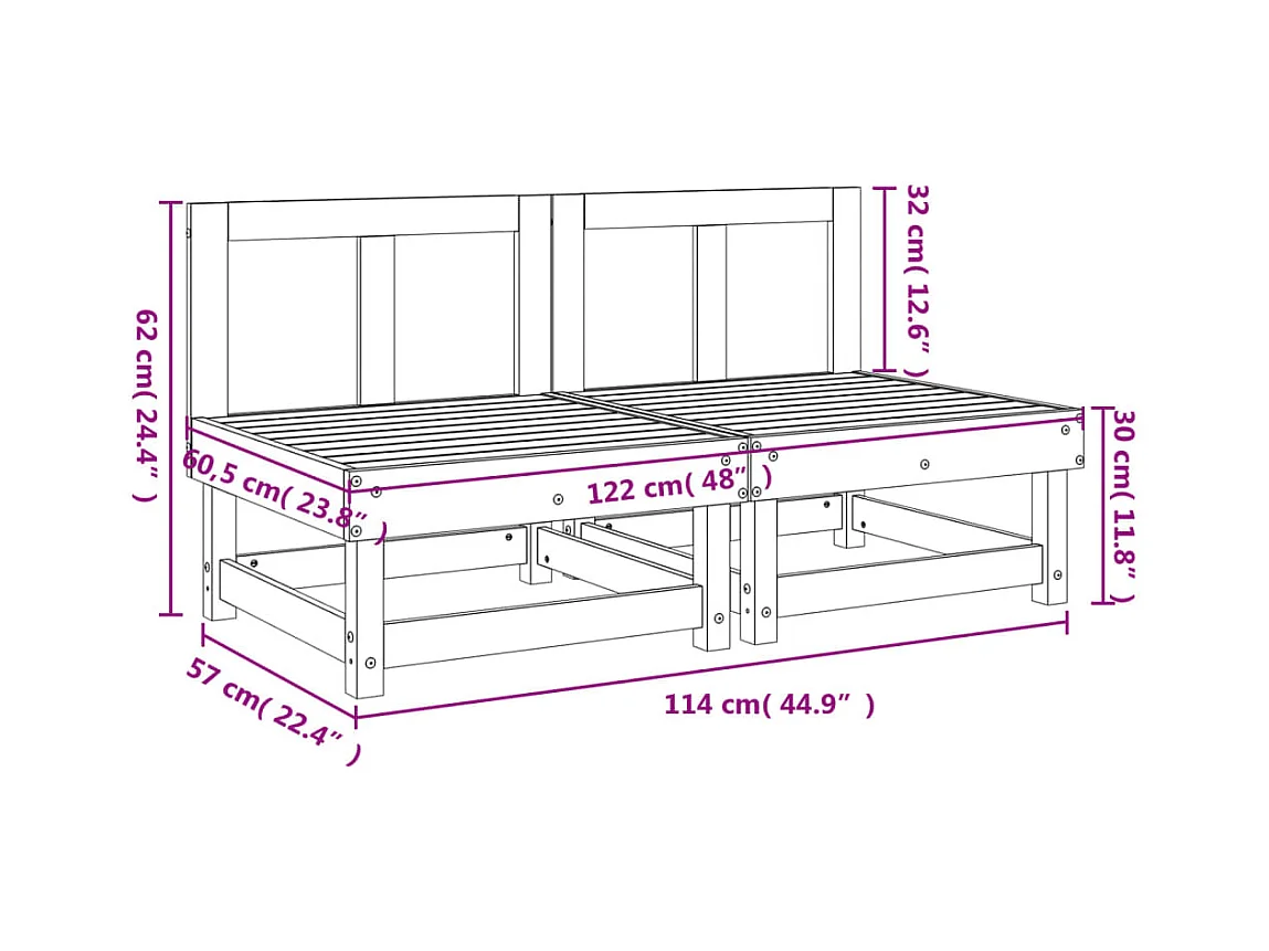 Sofás centrales de jardín 2 uds madera maciza de abeto Douglas