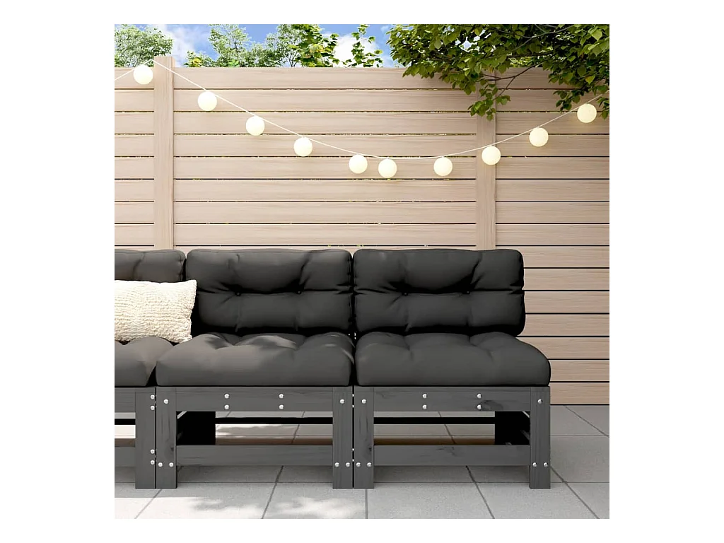 Sofás centrales con cojines 2 uds madera maciza de pino gris