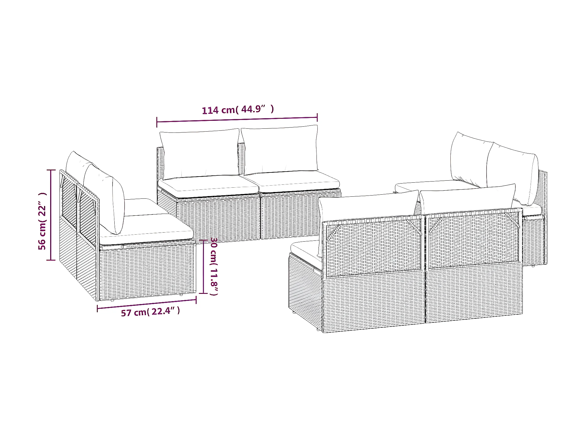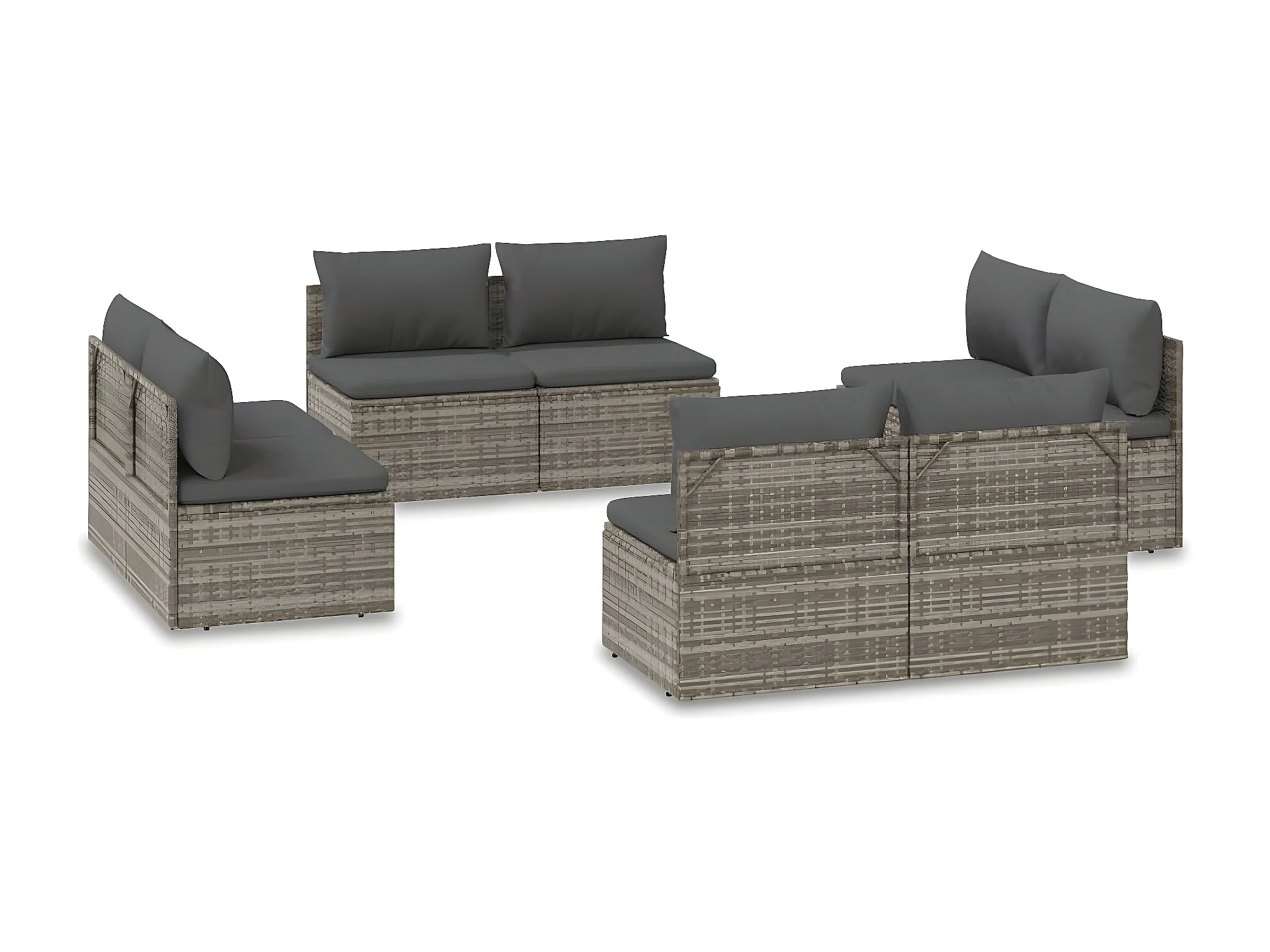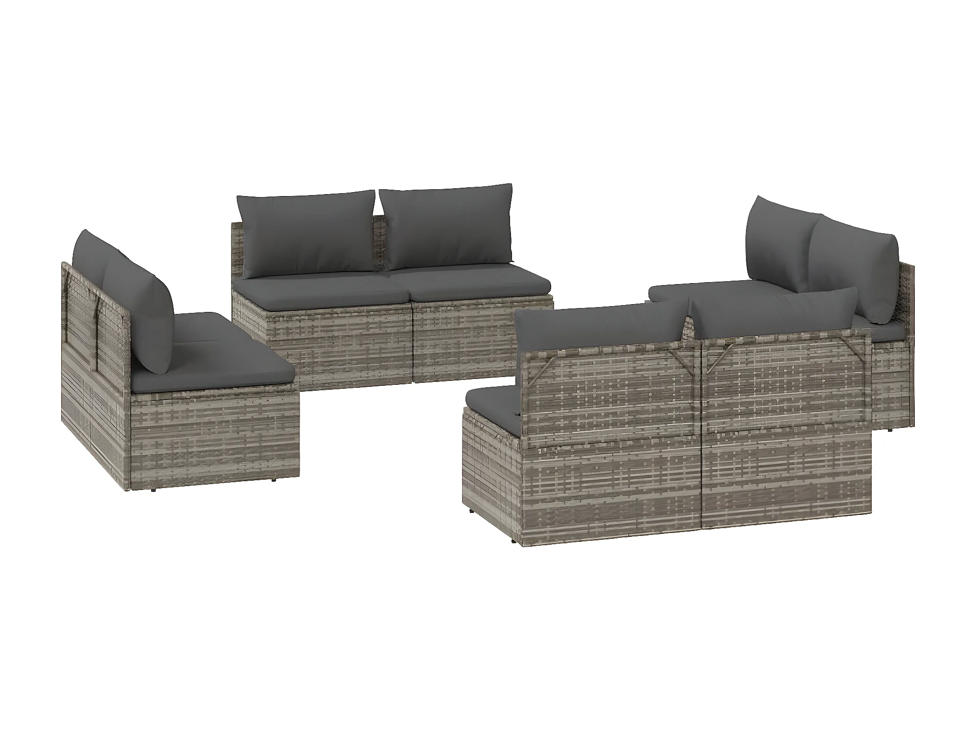 Sofás centrales de jardín 8 unidades ratán PE gris 57x57x56 cm