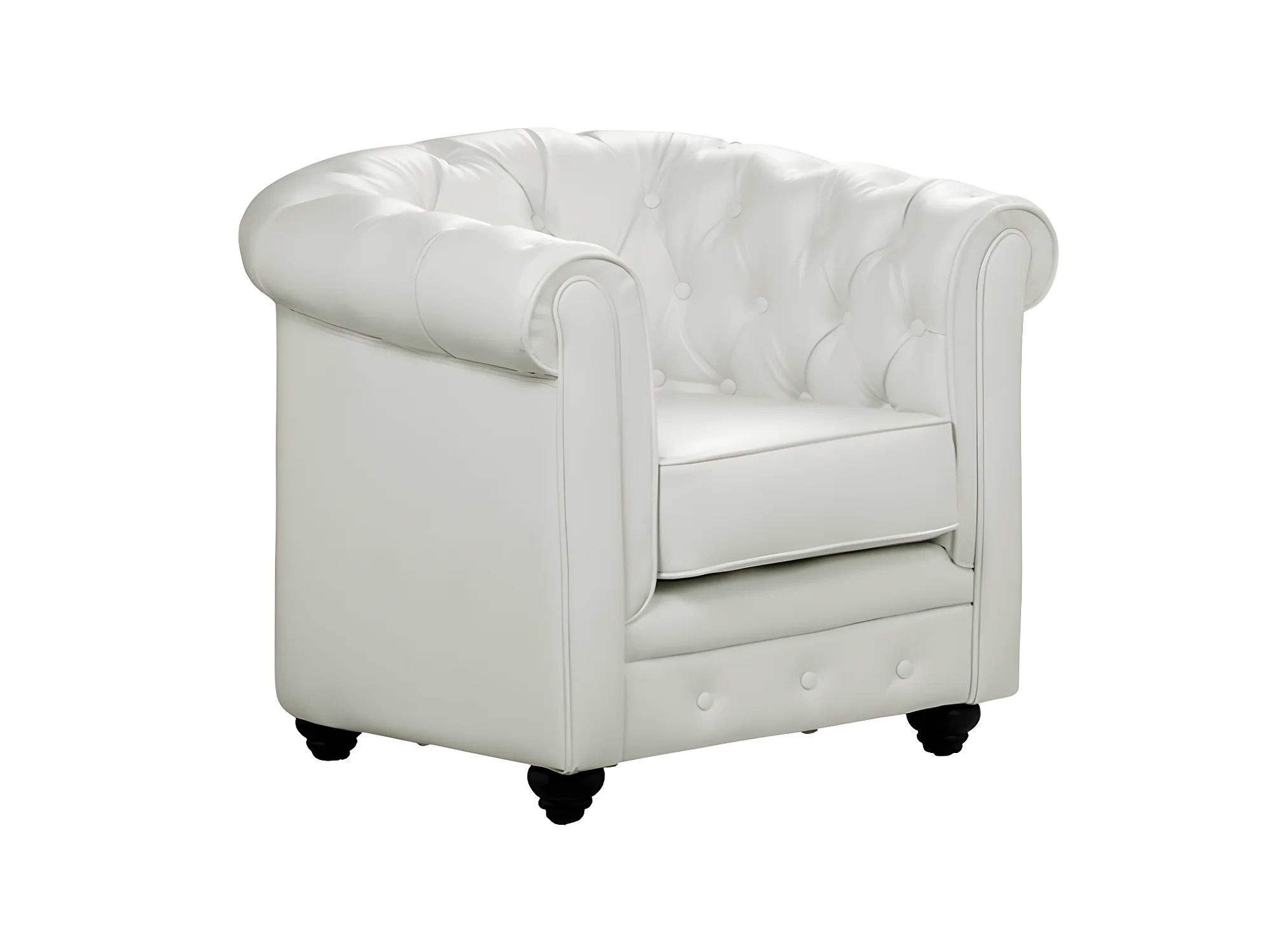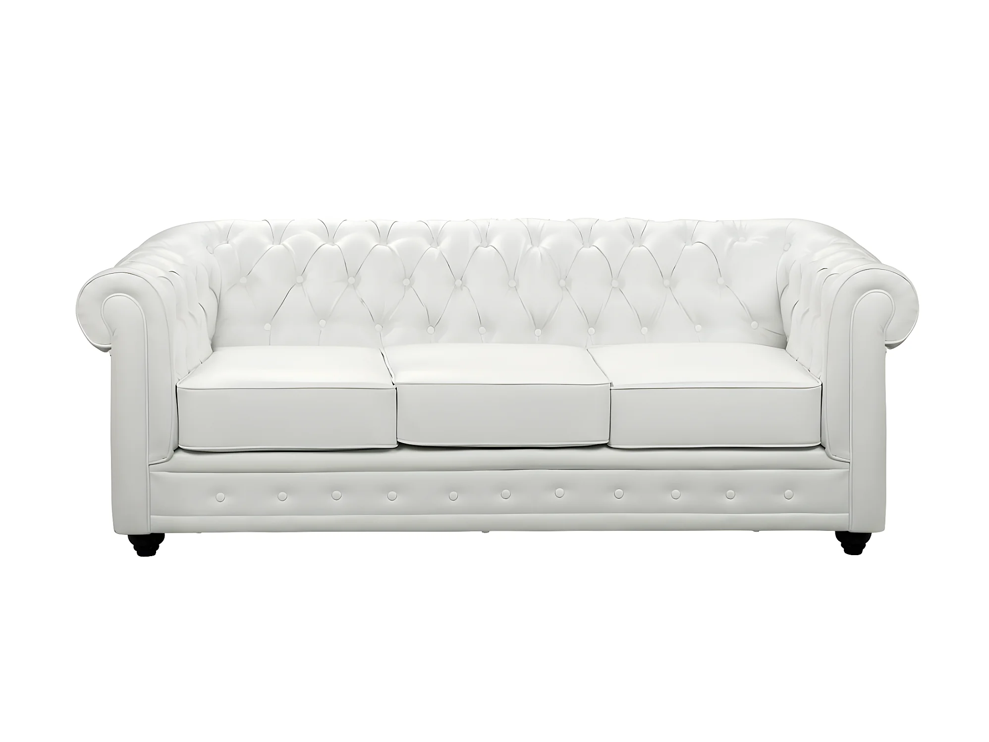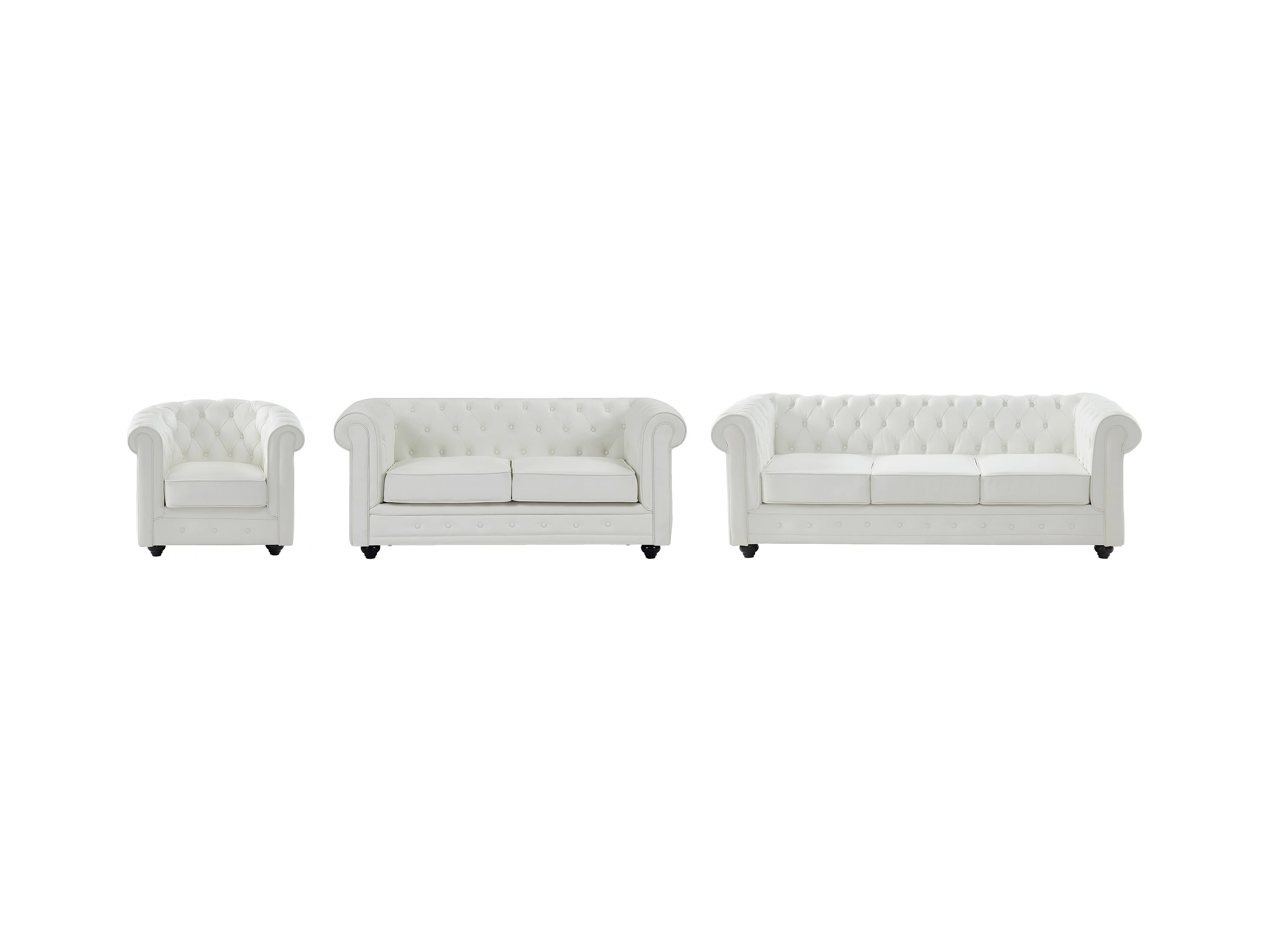 Sofás de 3 plazas, 2 plazas y sillón en imitación cuero blanco CHESTERFIELD