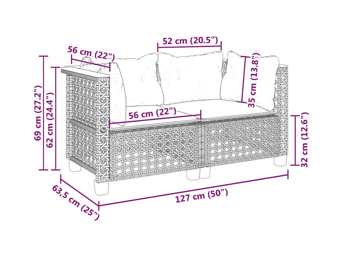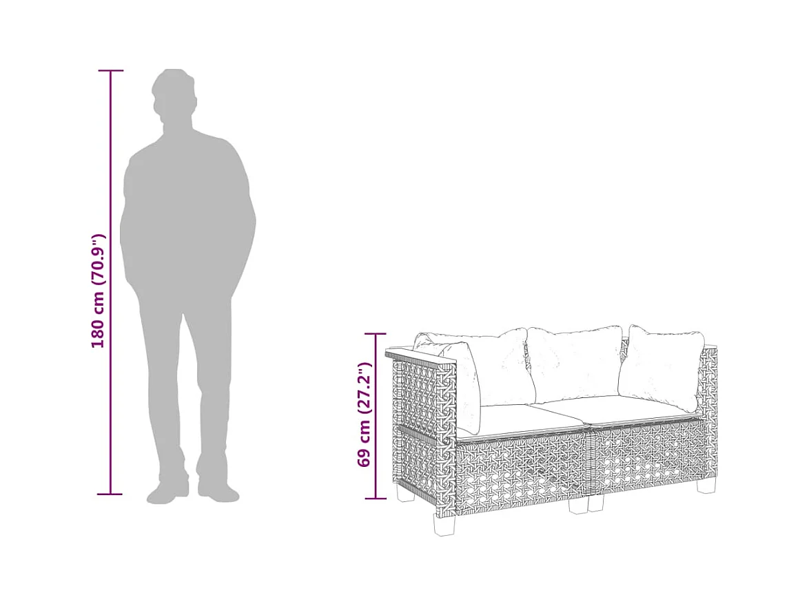 Sofá de jardín 2 plazas con mesa y cojines ratán PE gris
