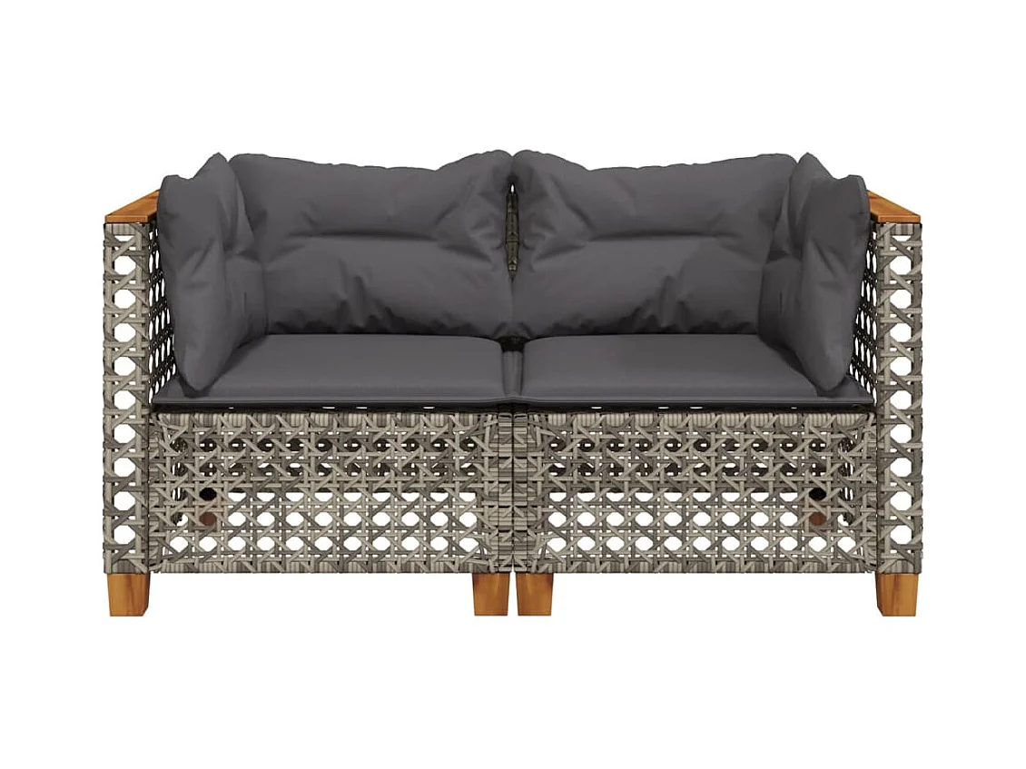 Sofá de jardín sin reposabrazos con cojines ratán PE gris