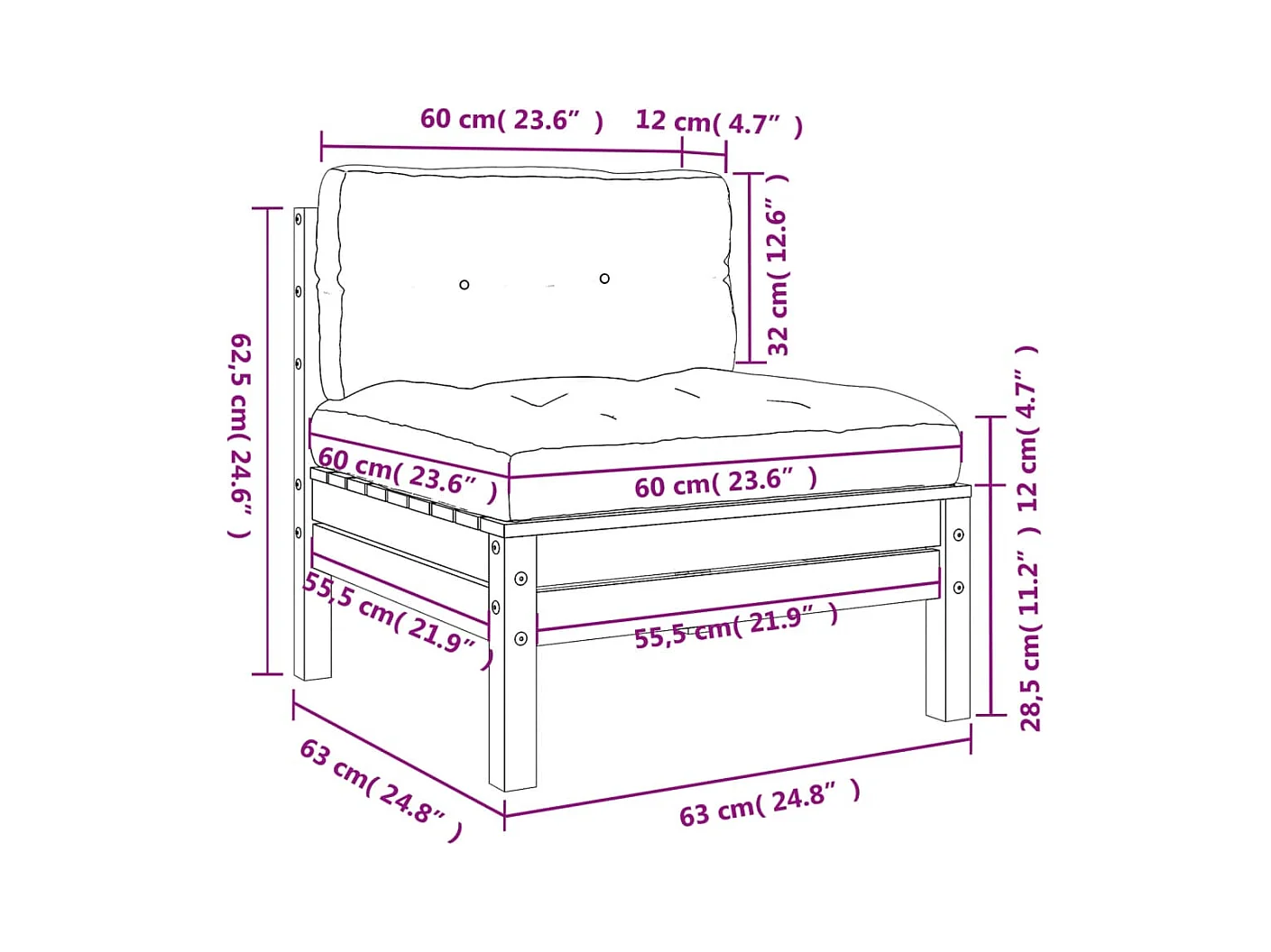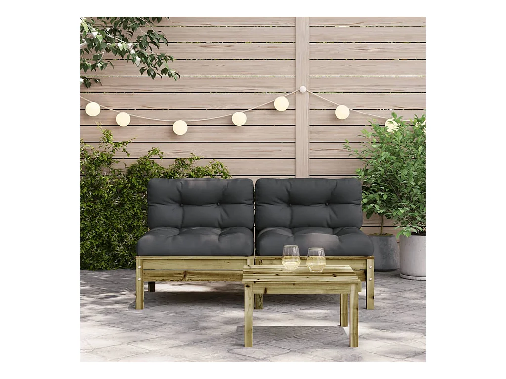 Sofá de jardín sin reposabrazos ni cojines 2 piezas pino impregnado