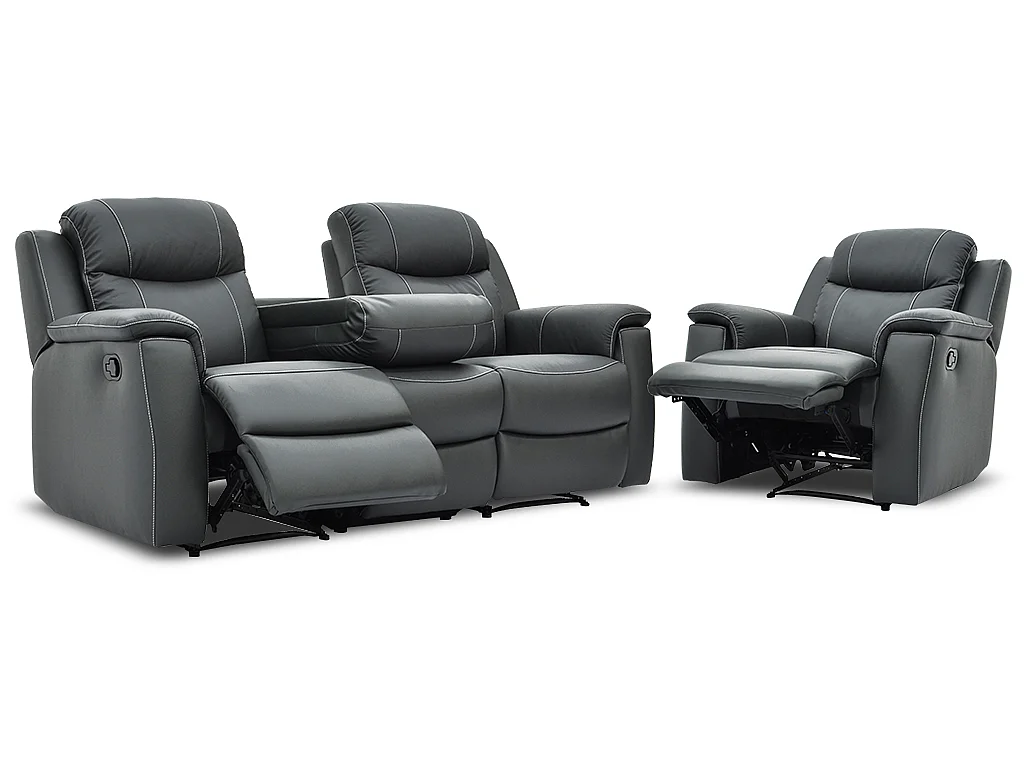 Sofá 3+1 plazas relax EVASION de piel - Gris