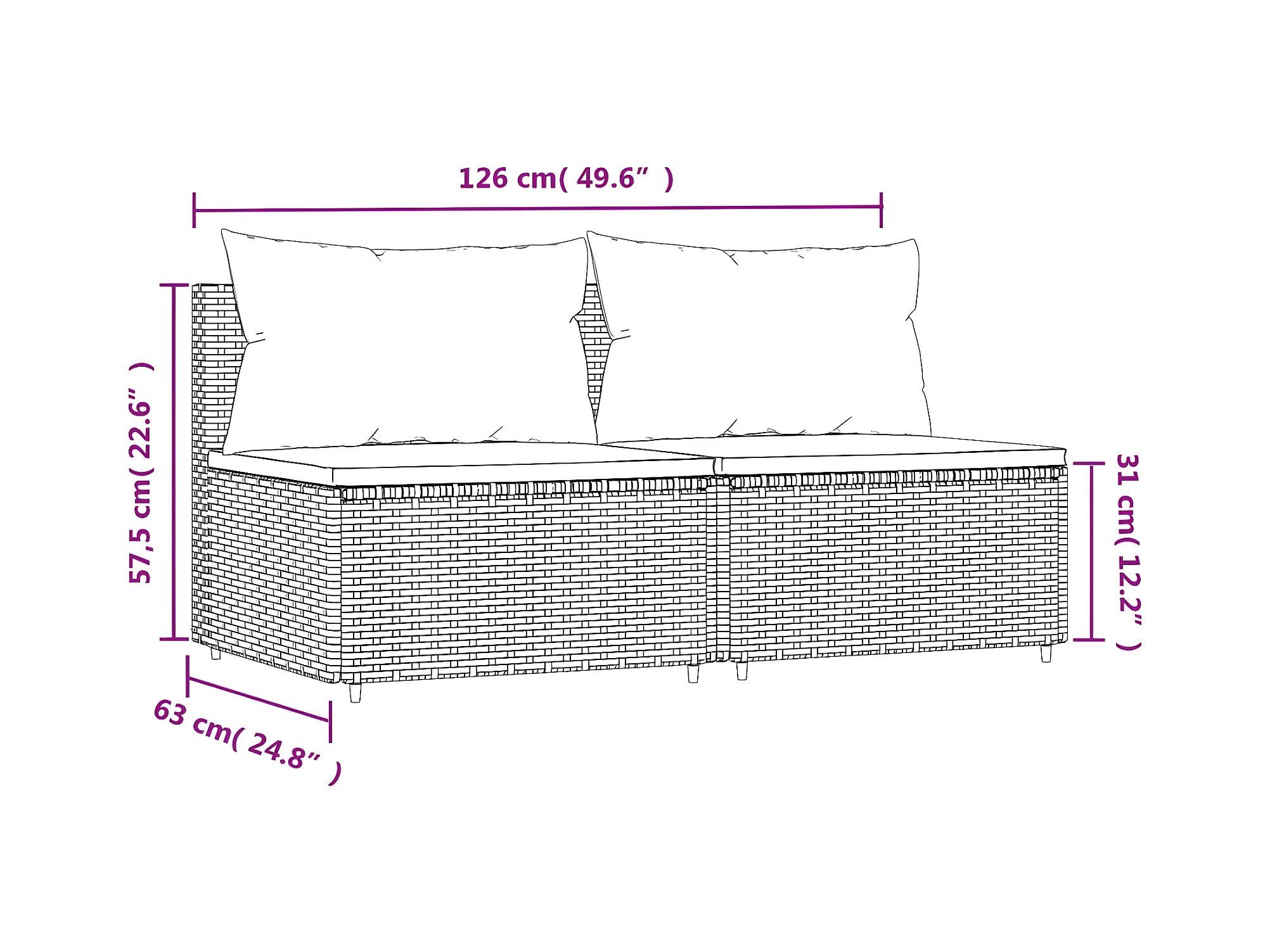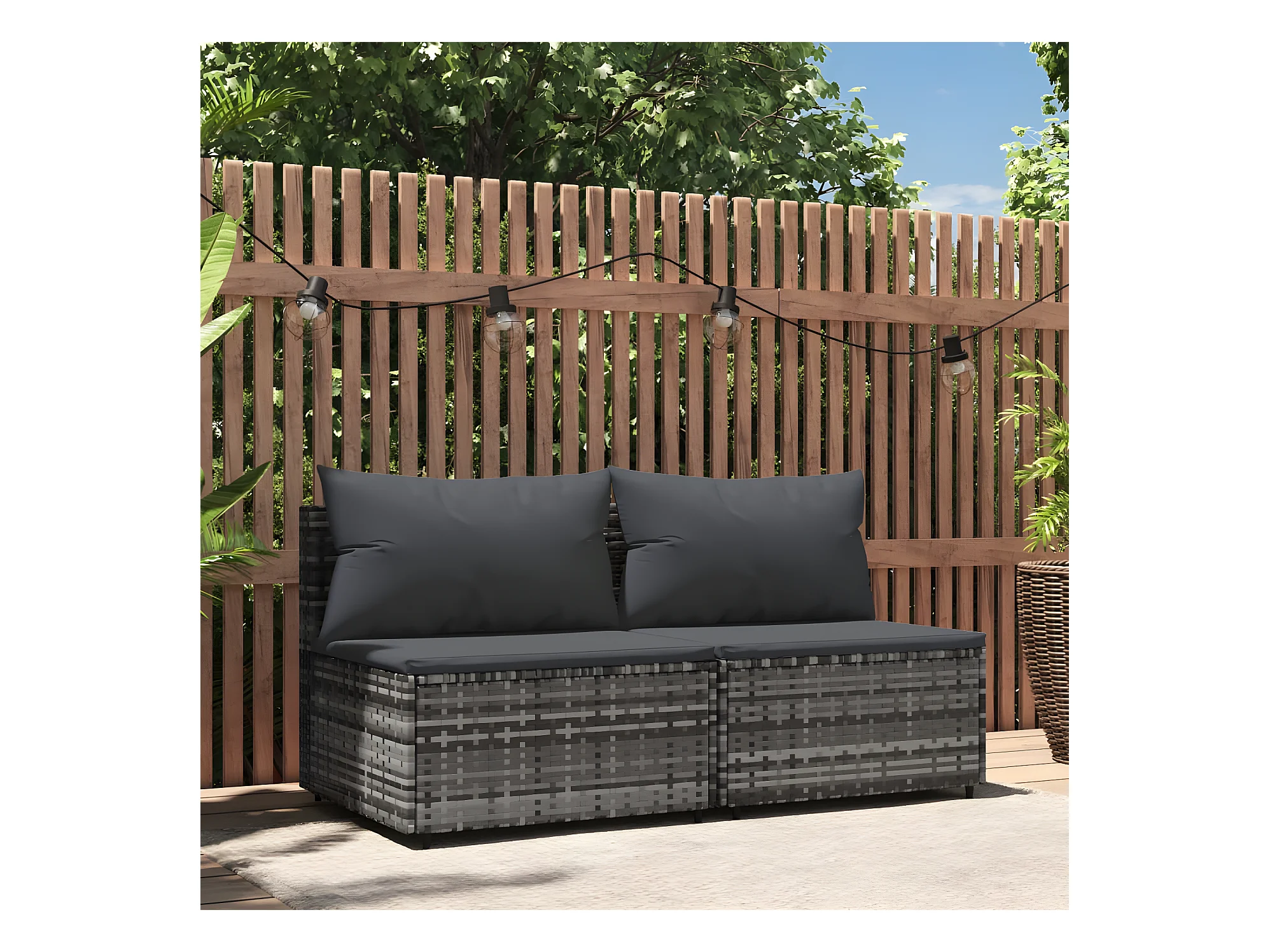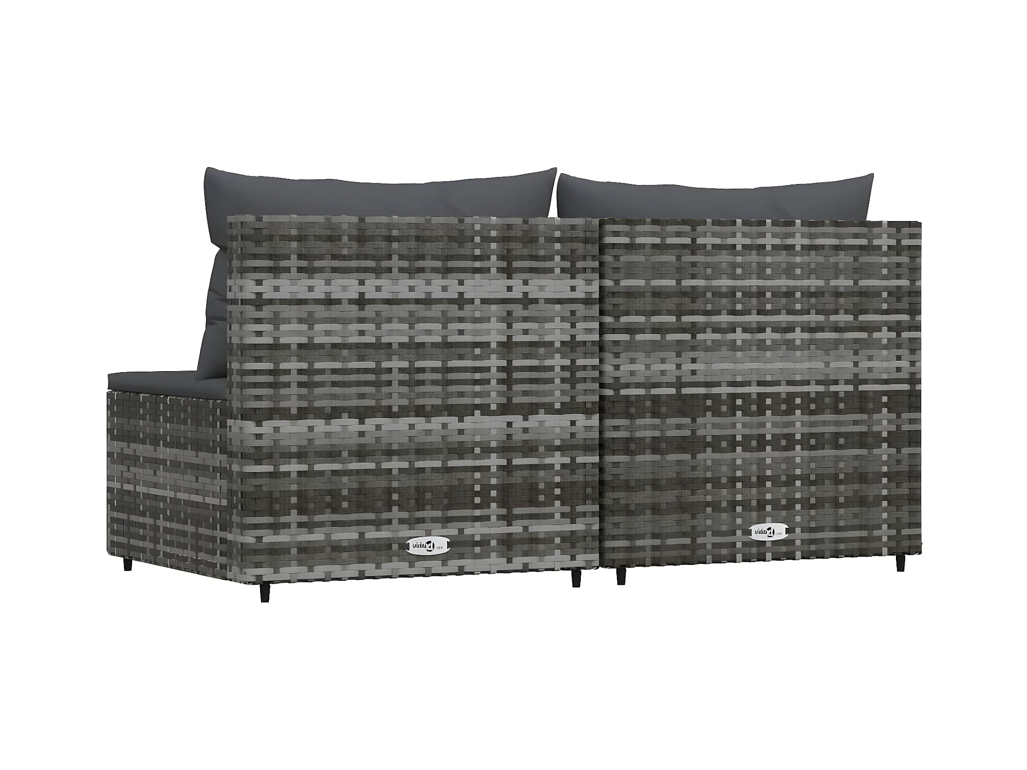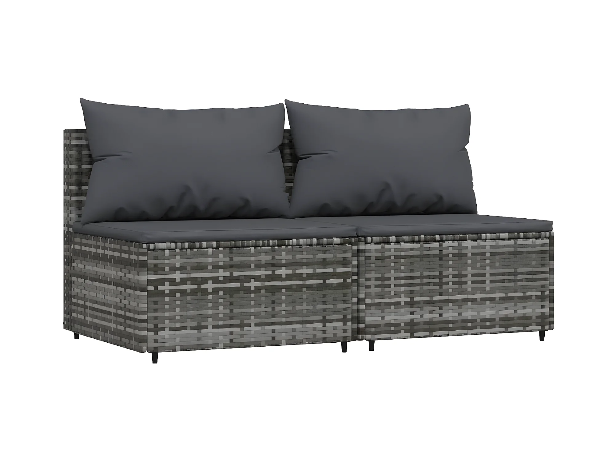 Sofás y cojines centrales de jardín 2uds Mimbre resina gris
