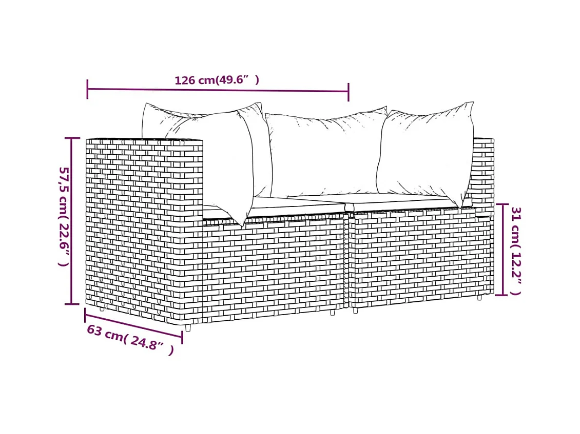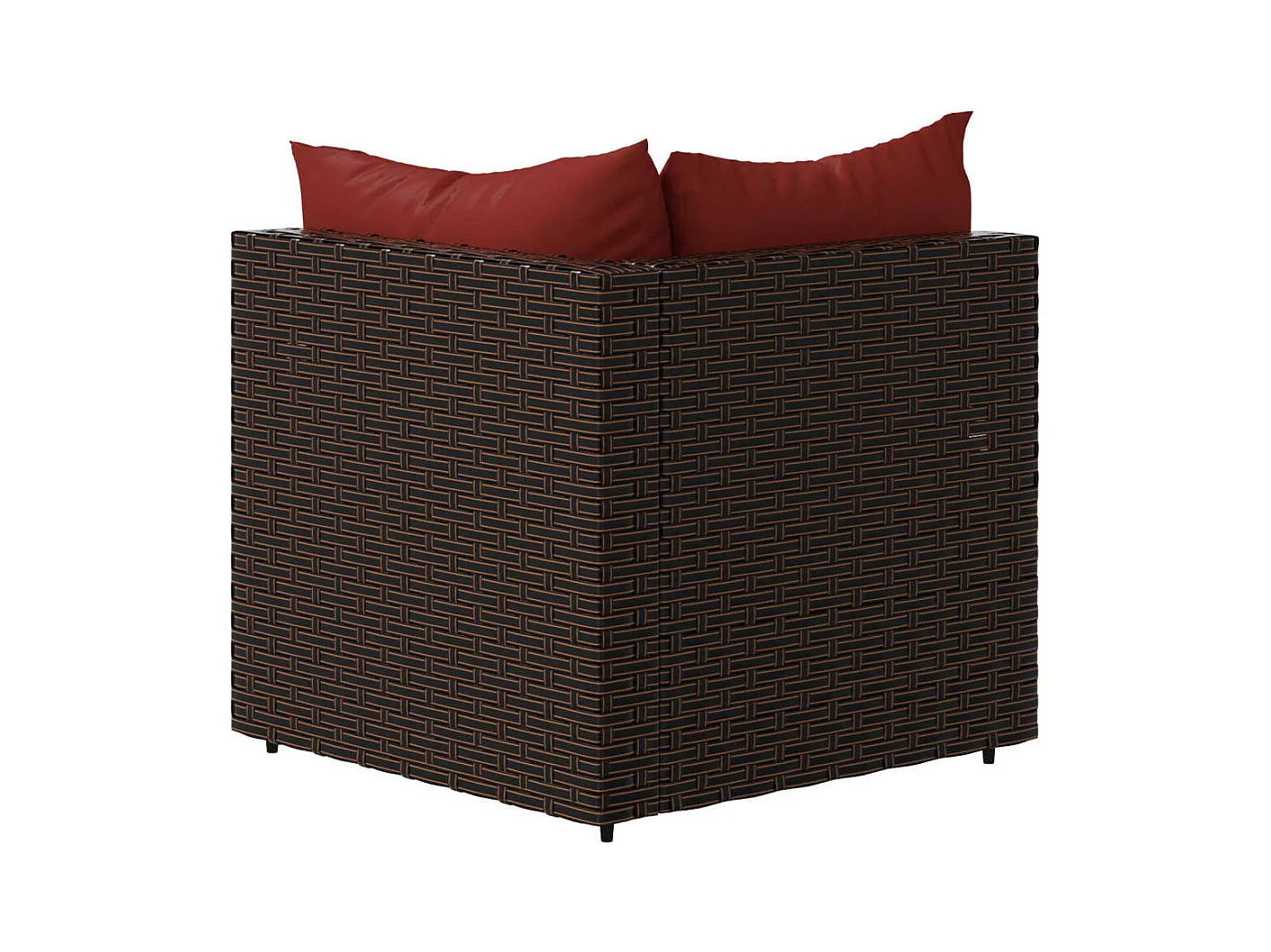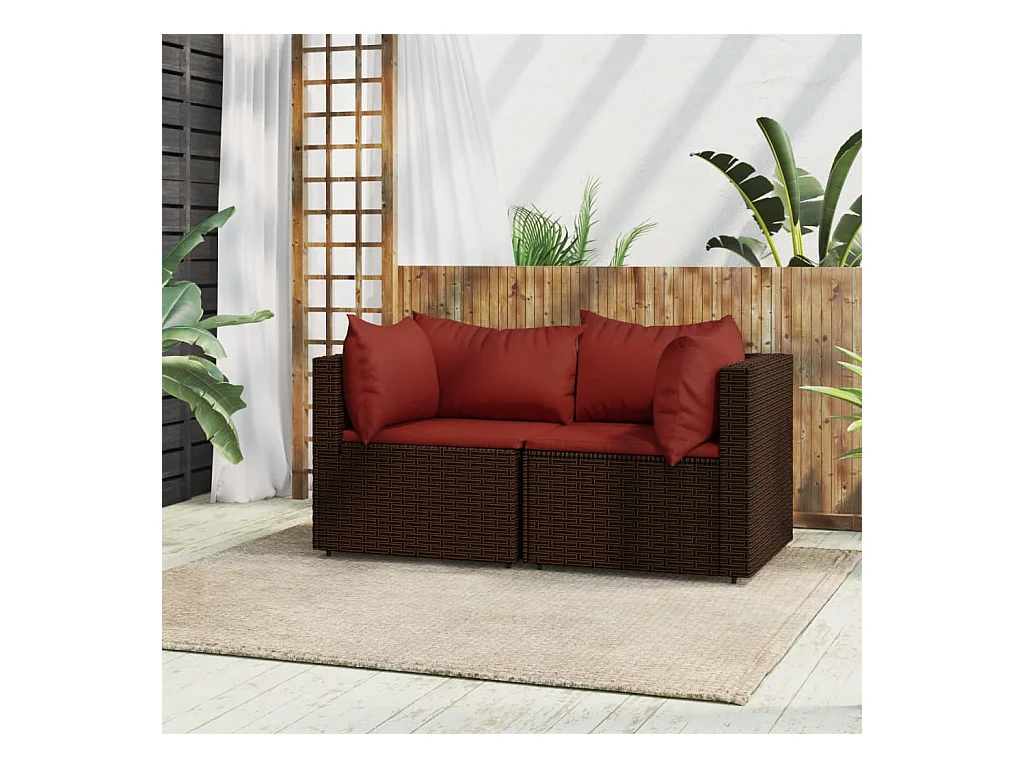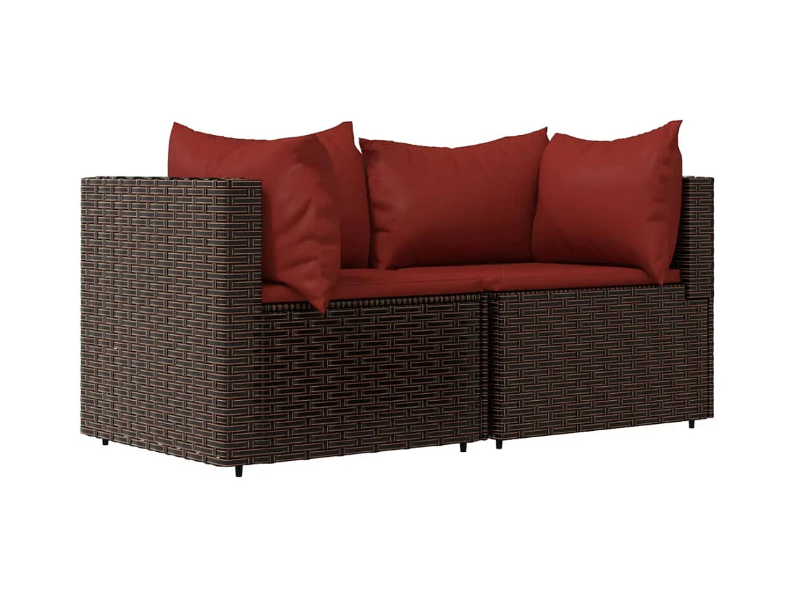 Sofás y cojines rinconeros de jardín 2 piezas mimbre de resina marrón