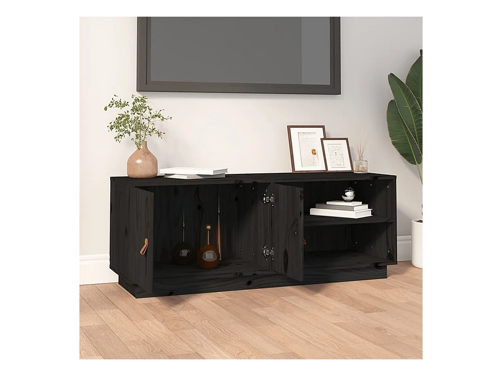 Sofia Marie Mueble de TV de madera maciza de pino negro 105x34x40 cm