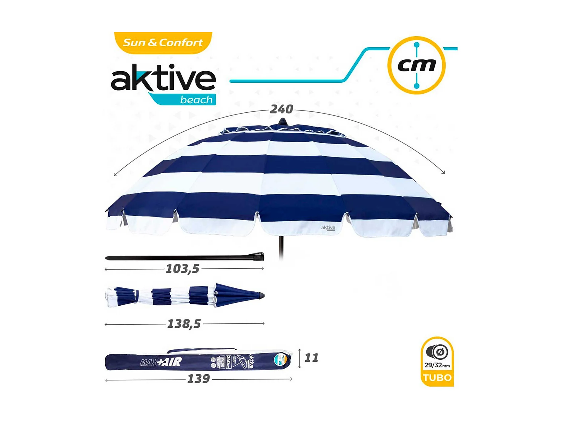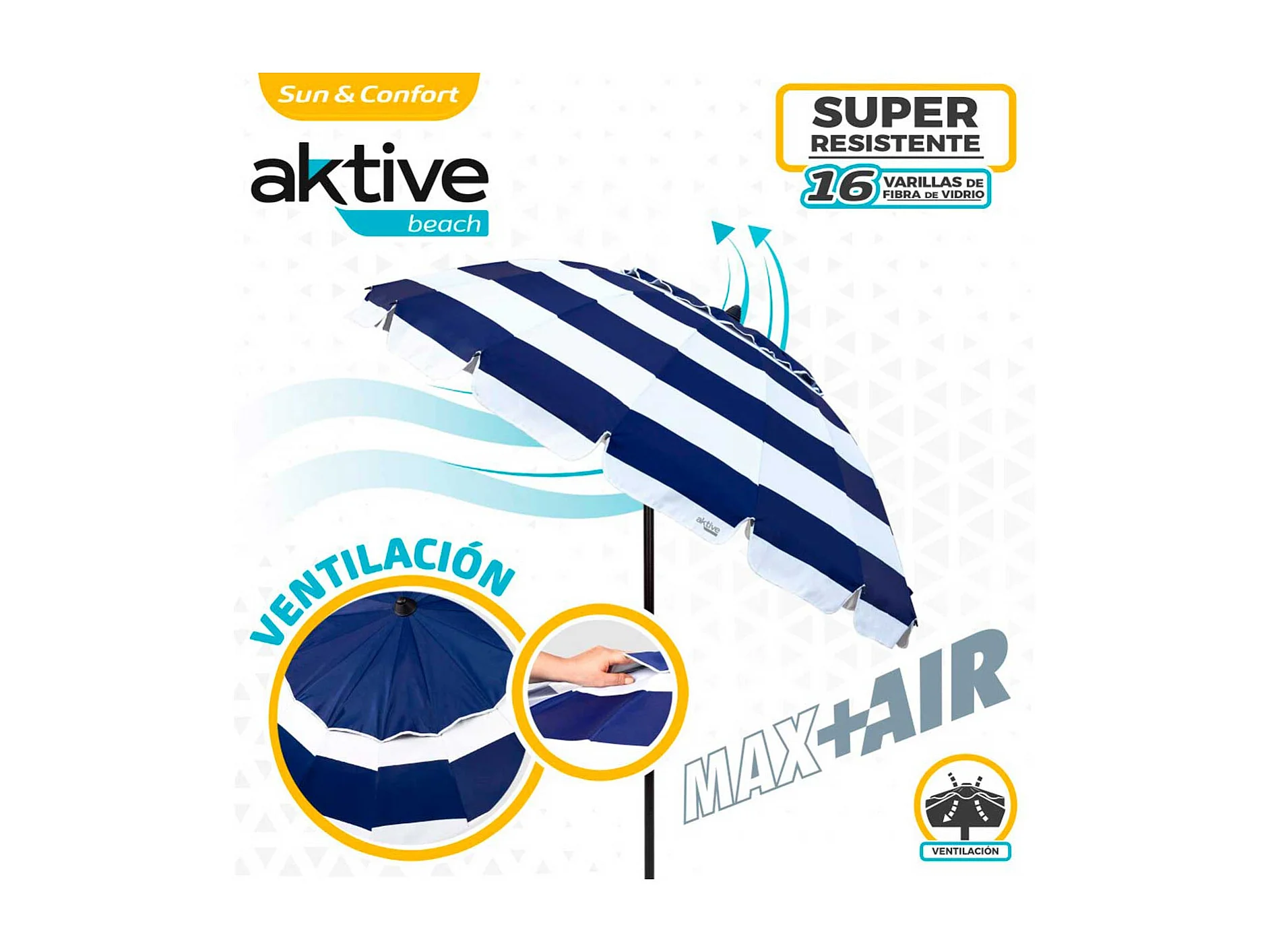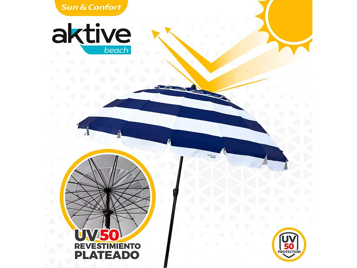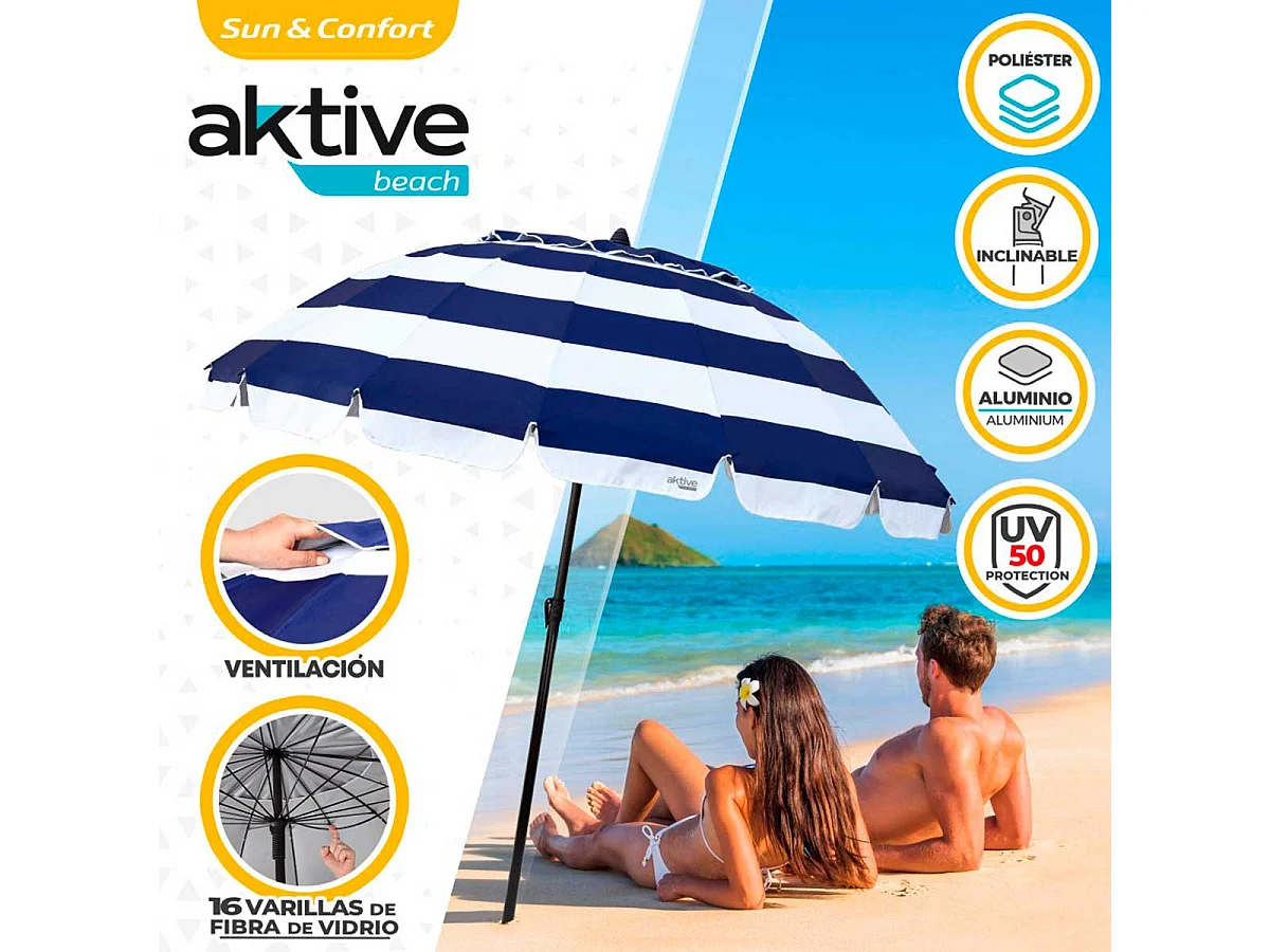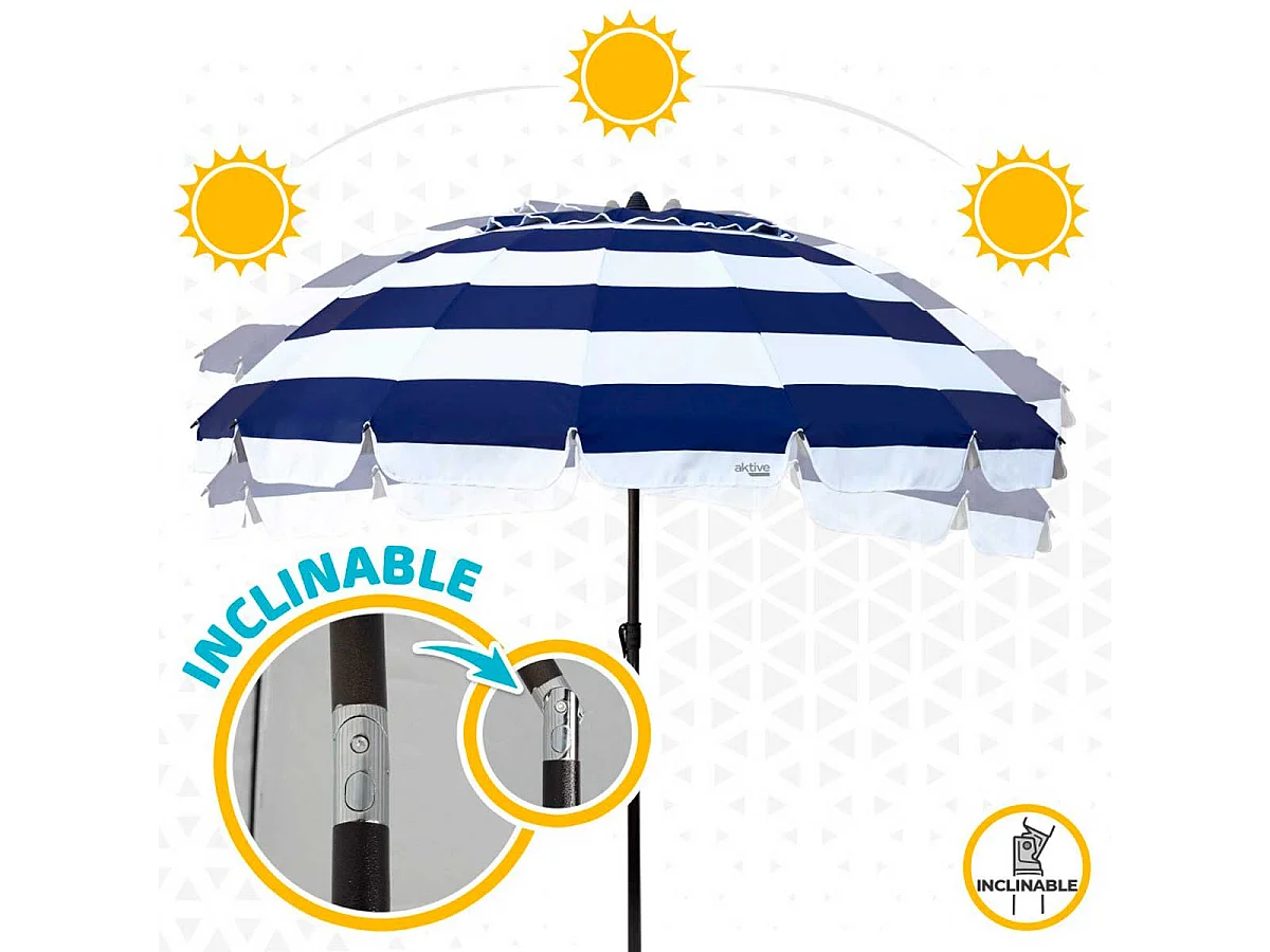 Sombrilla Air Max Aktive Beach altura regulable protección UV50 azul/blanco Ø240 cm