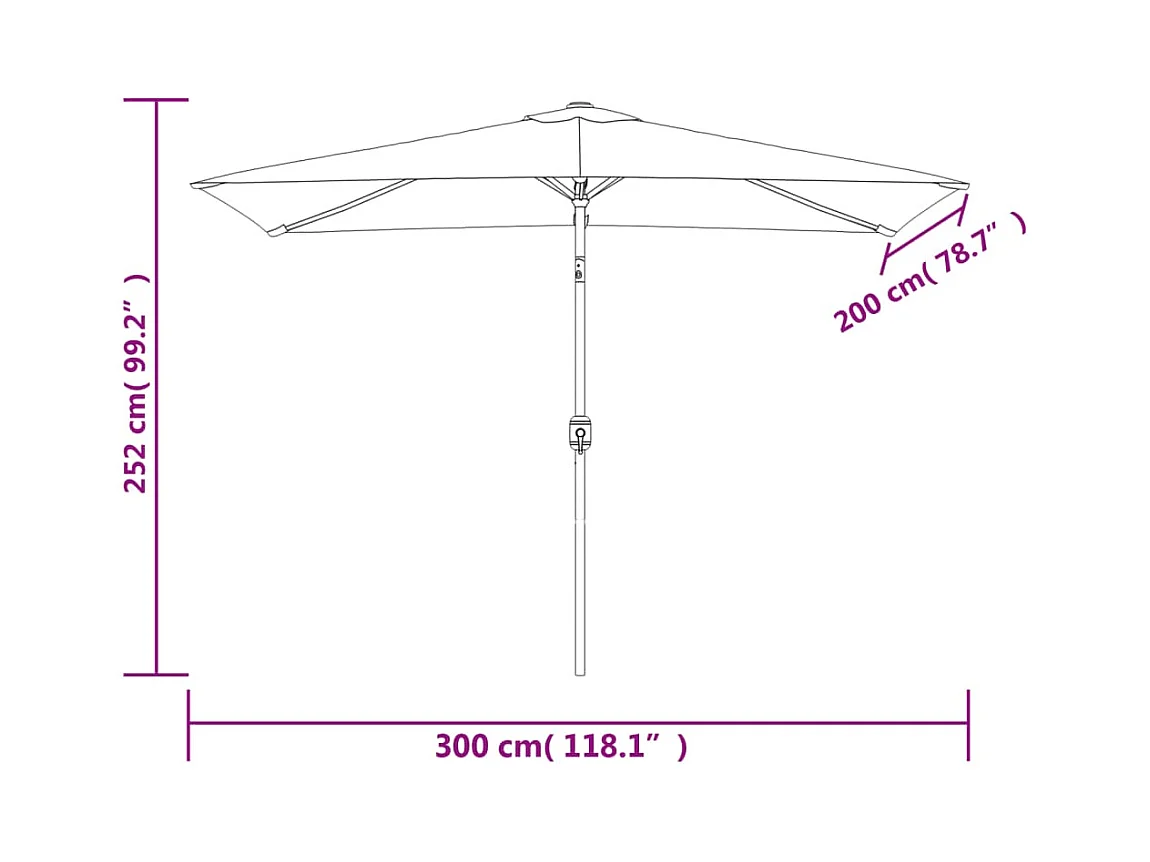 Sombrilla con poste de metal 300 x 200 cm Negro