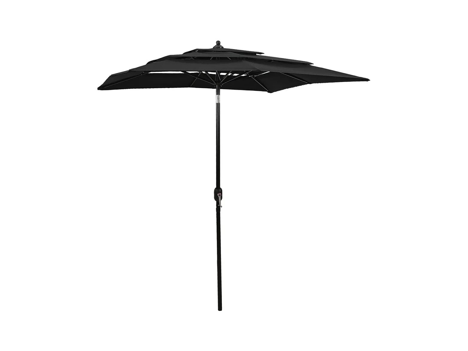 Sombrilla de 3 niveles con poste de aluminio negra 2x2 m