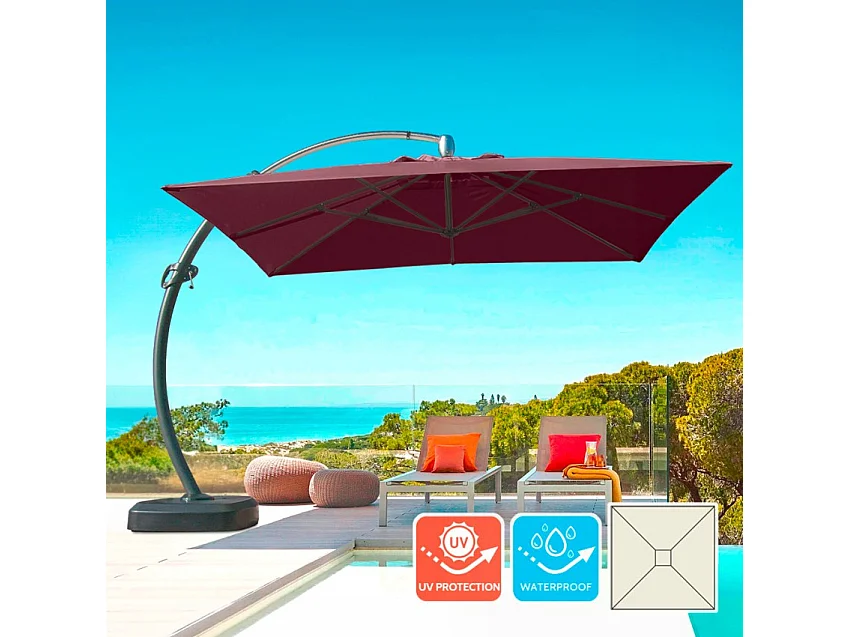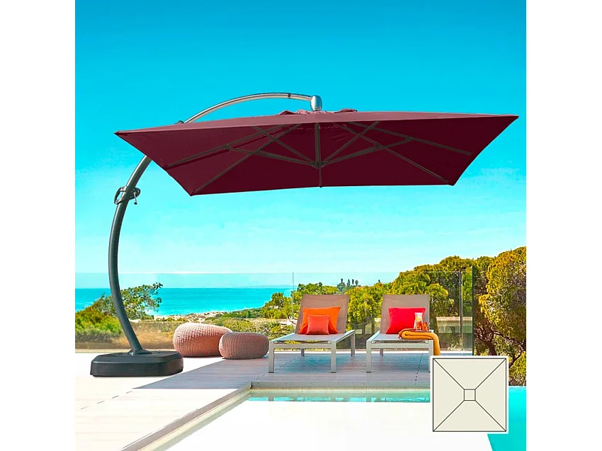Parasol cuadrado de aluminio deportado 3x3m Roma