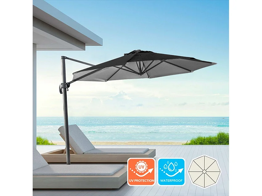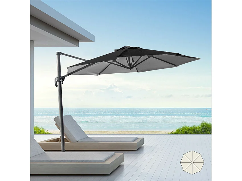 Sombrilla de aluminio con poste descentralizado para hogar y local 3x3m Paradise Noir