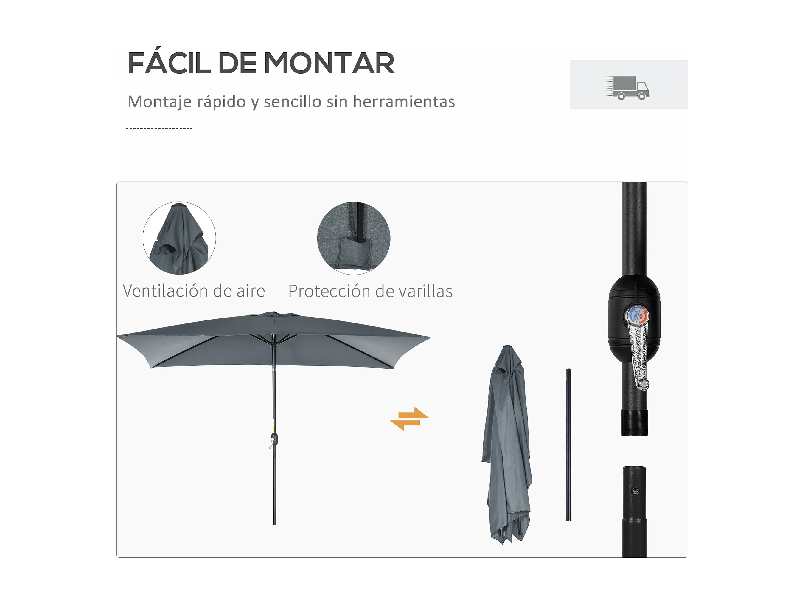 Sombrilla de jardín gris oscuro 195x295x240 cm Outsunny