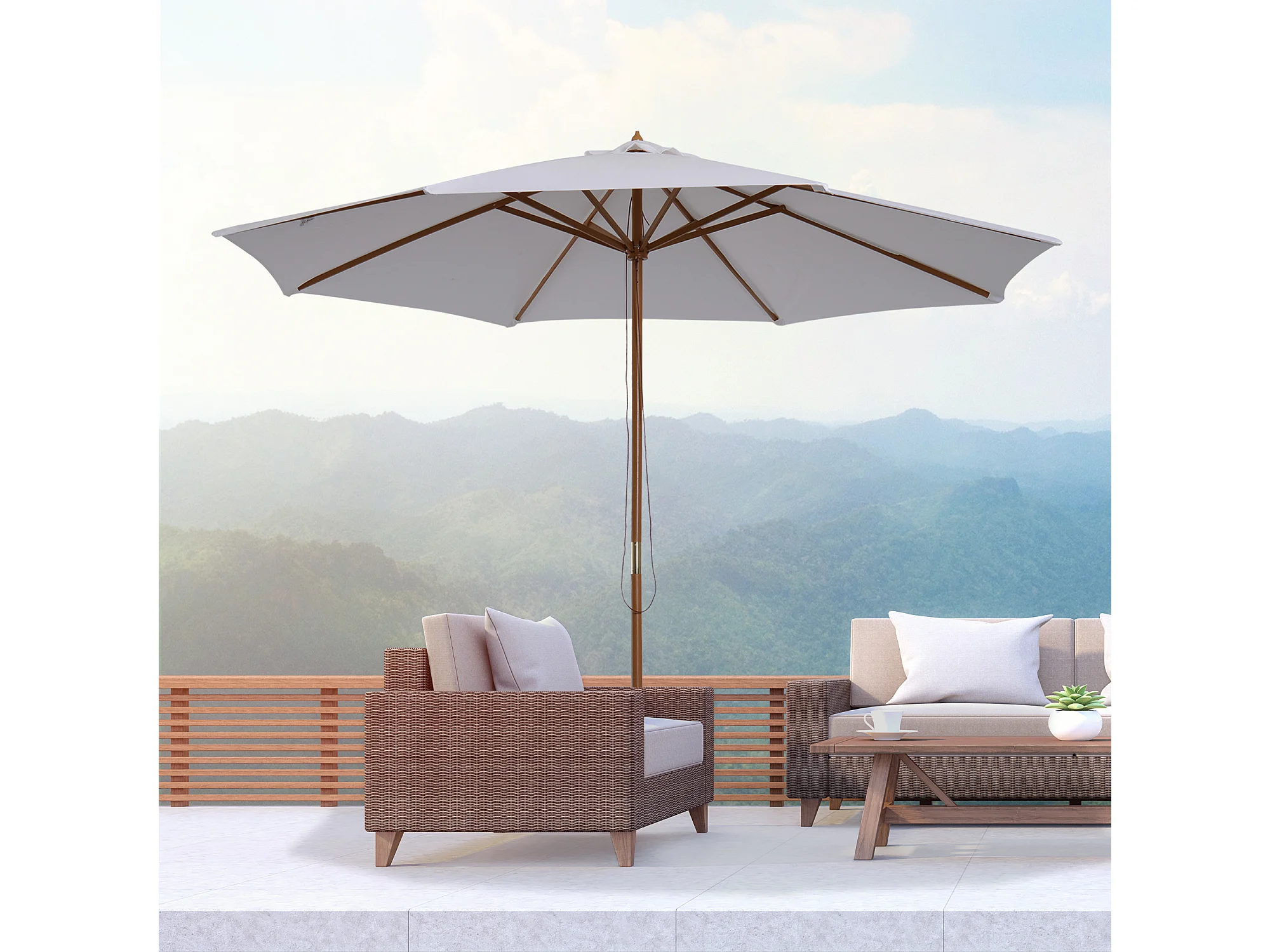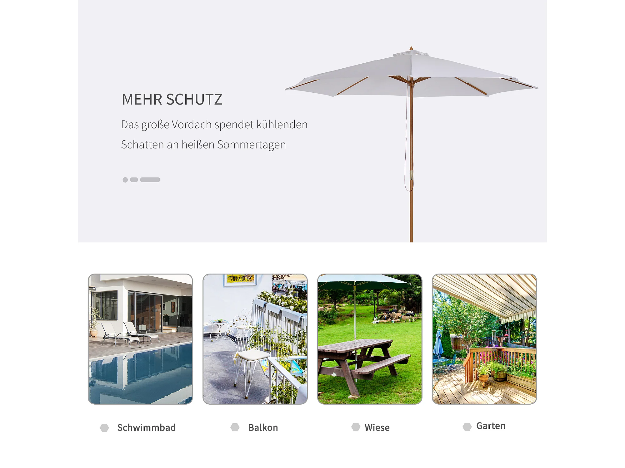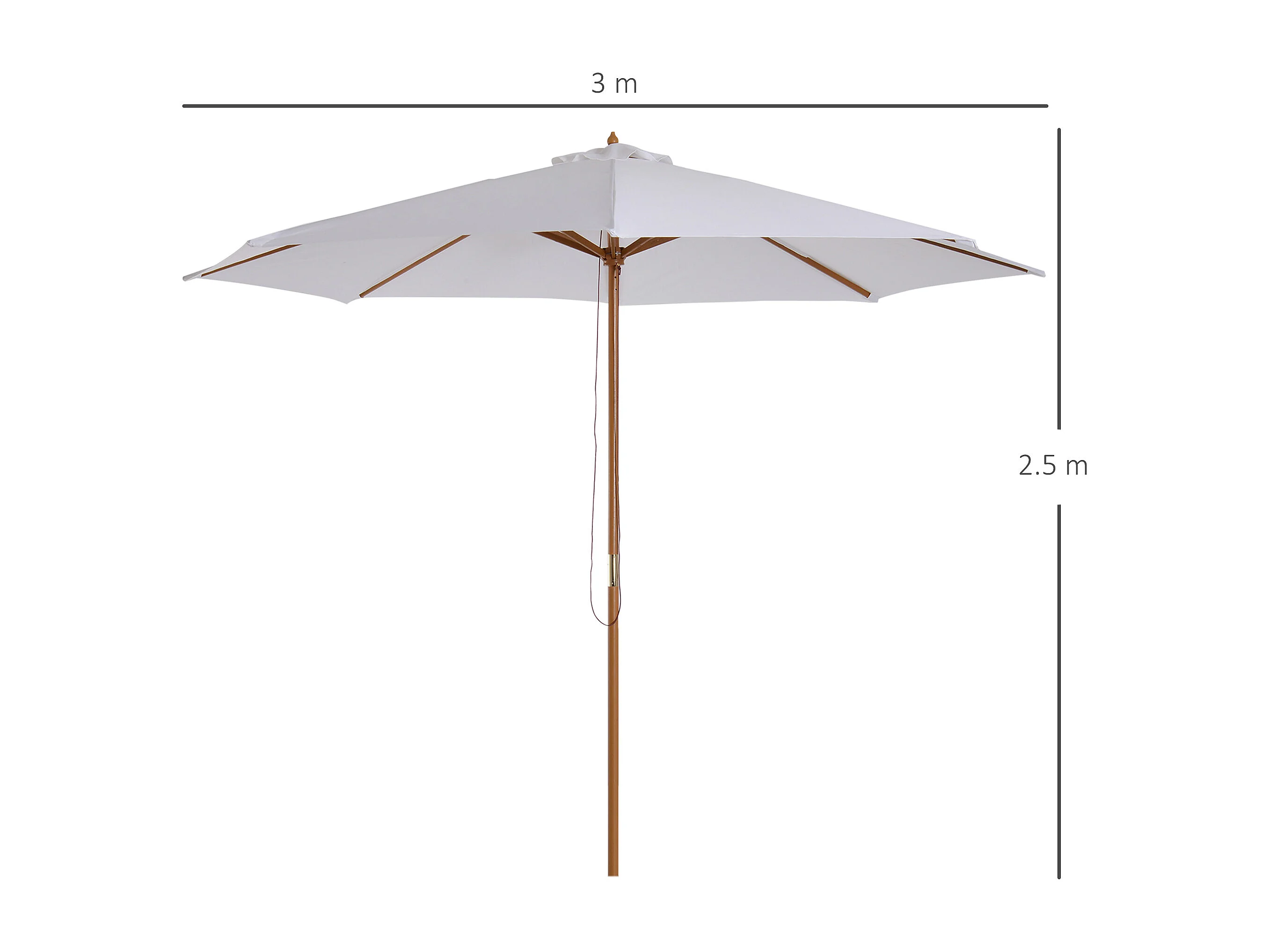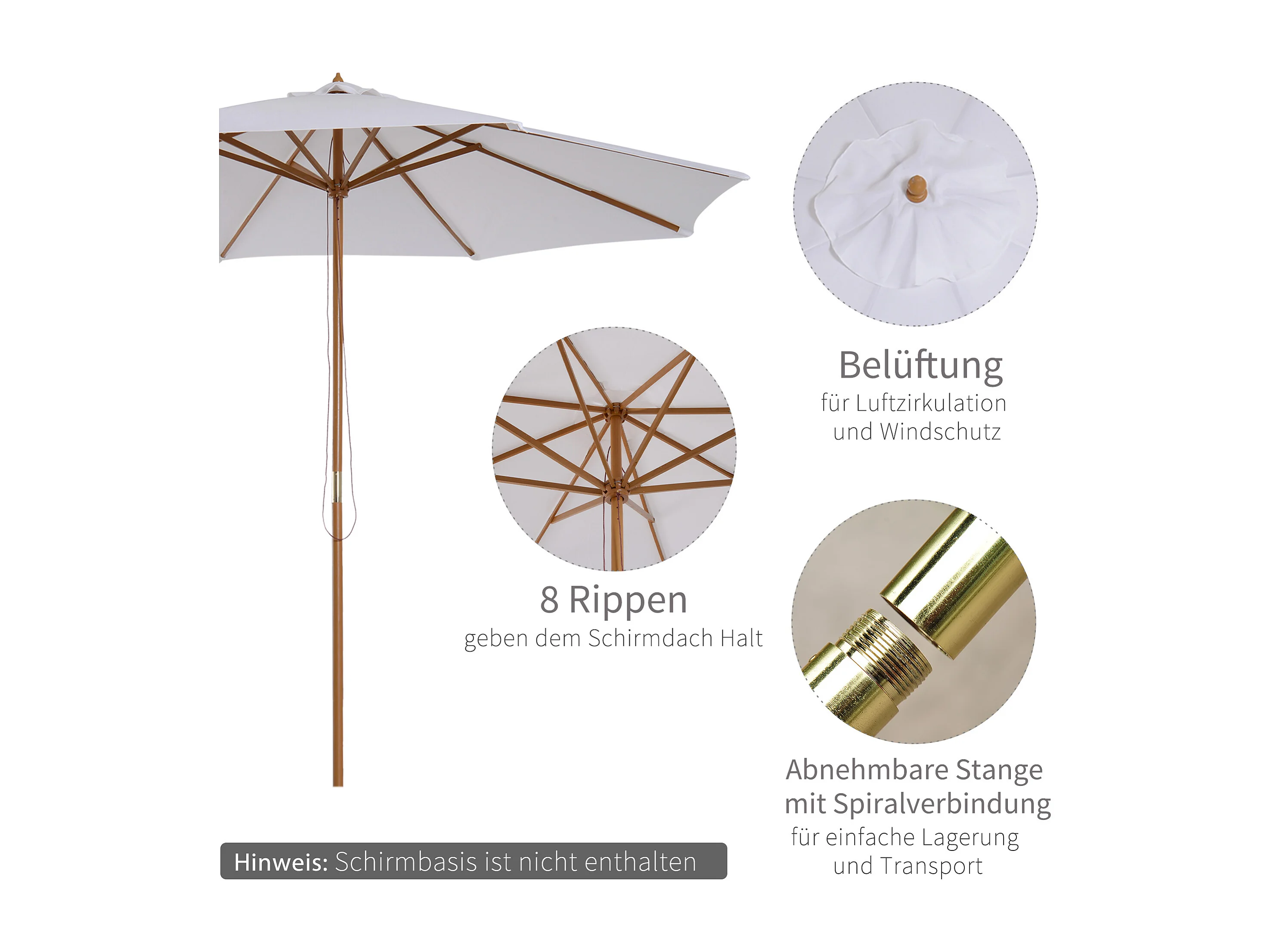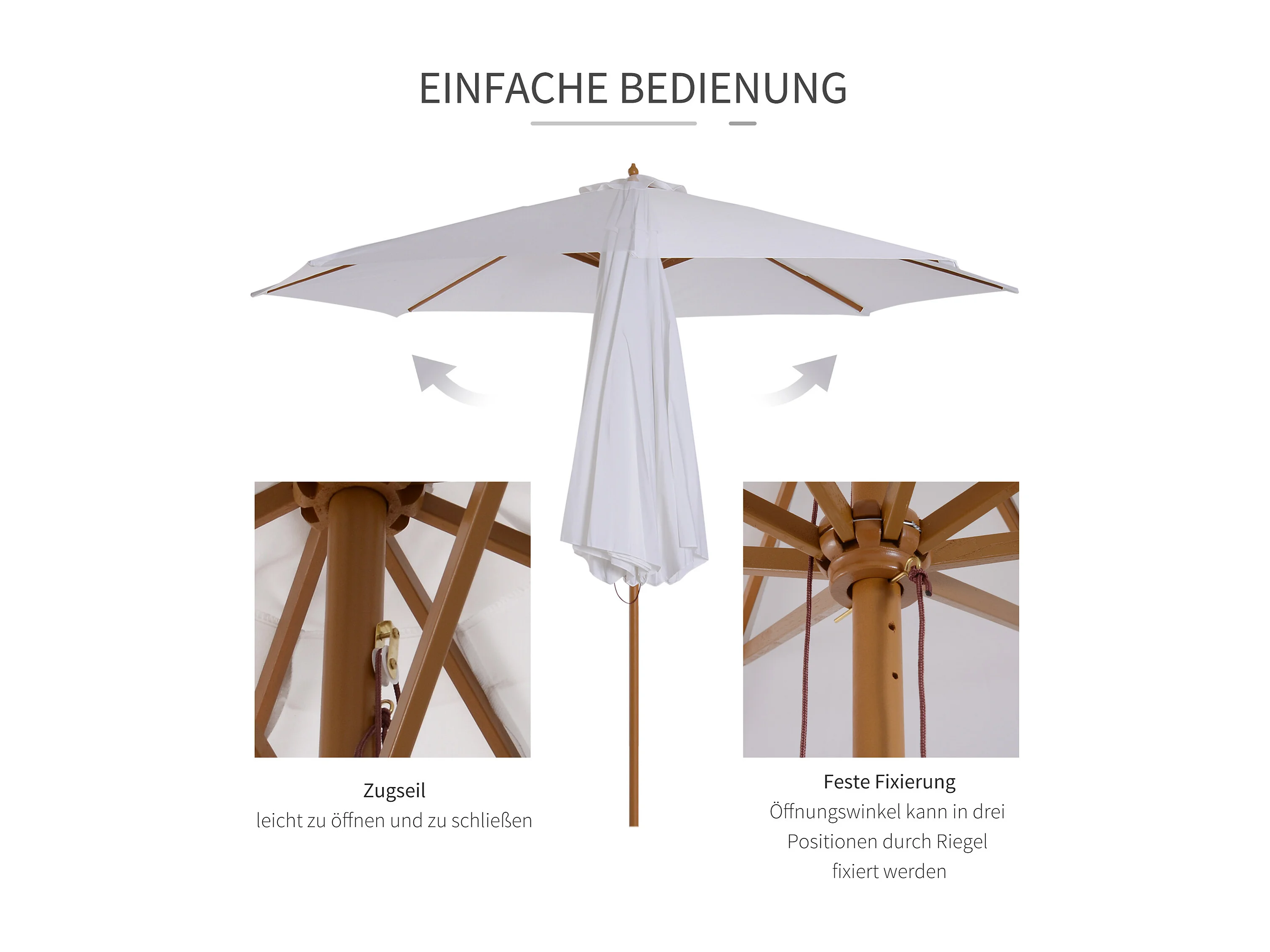 Sombrilla de madera, 300 cm, con mecanismo de elevación, bambú, color crema (300x300x250 cm)