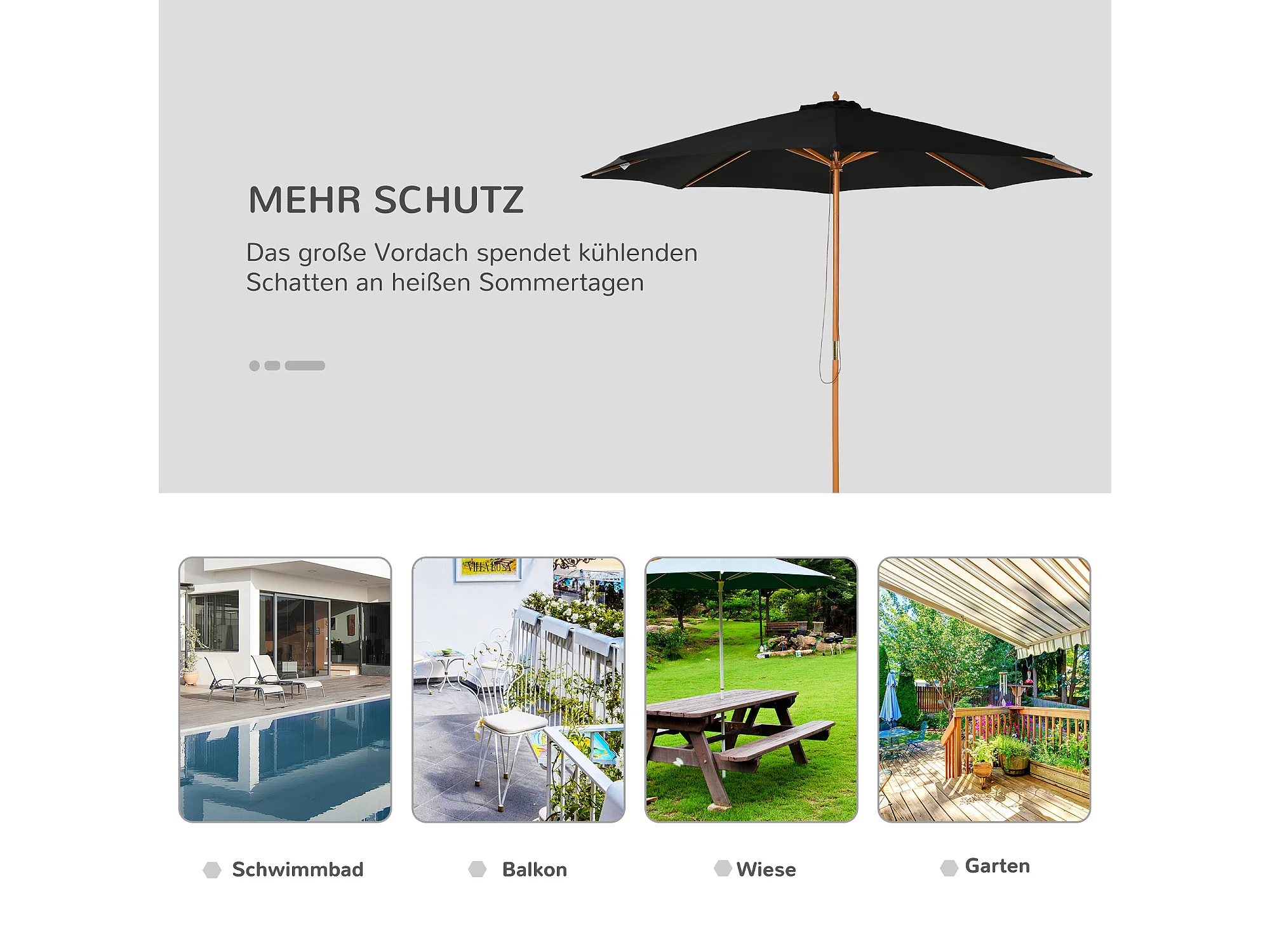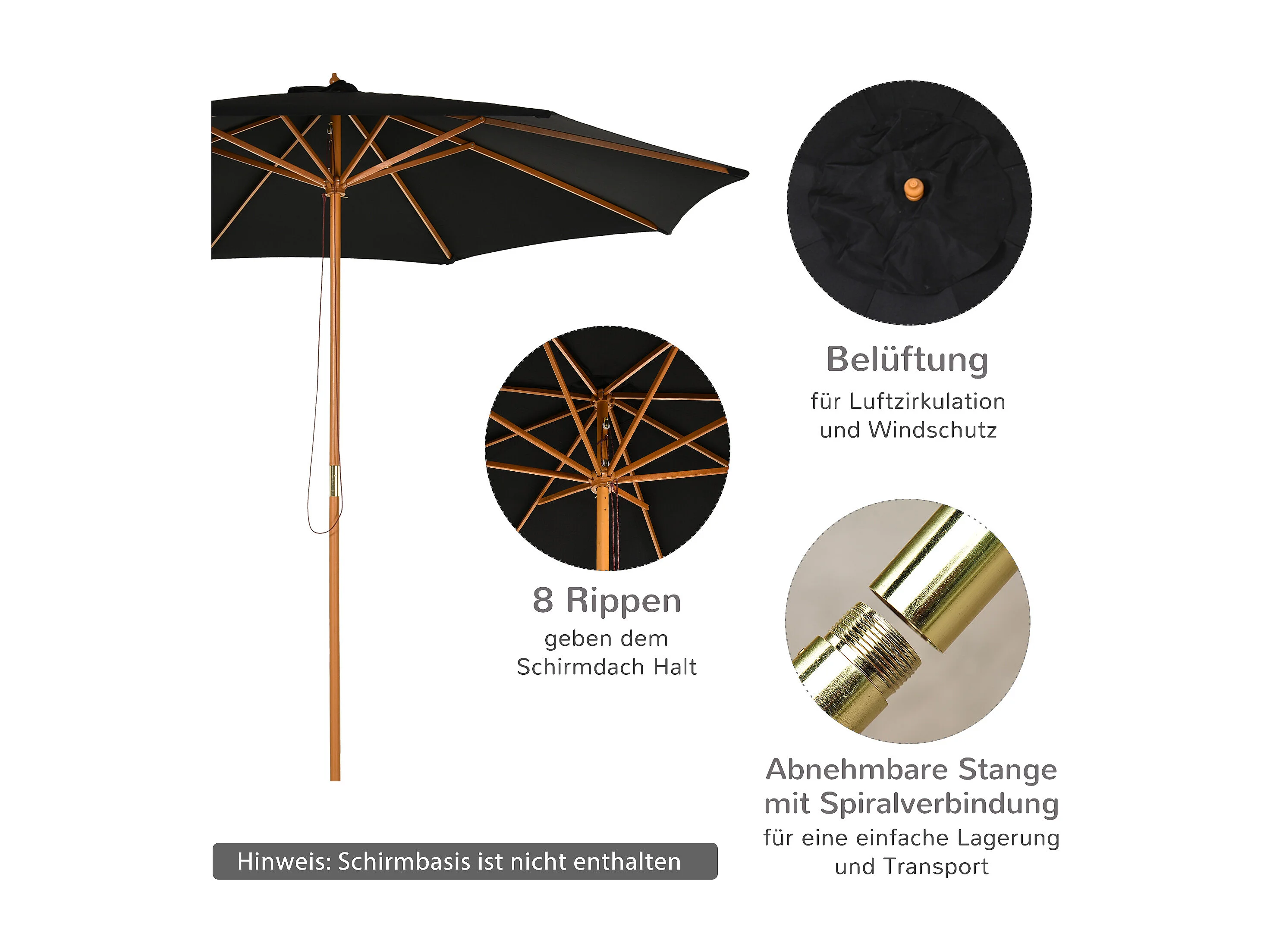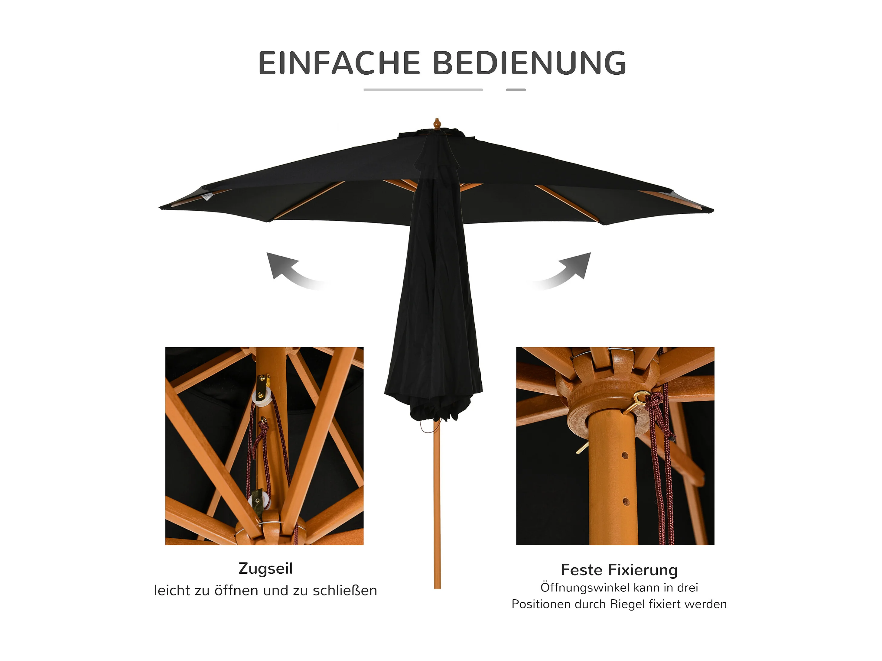 Sombrilla de exterior con mástil de madera 330 cm Negra