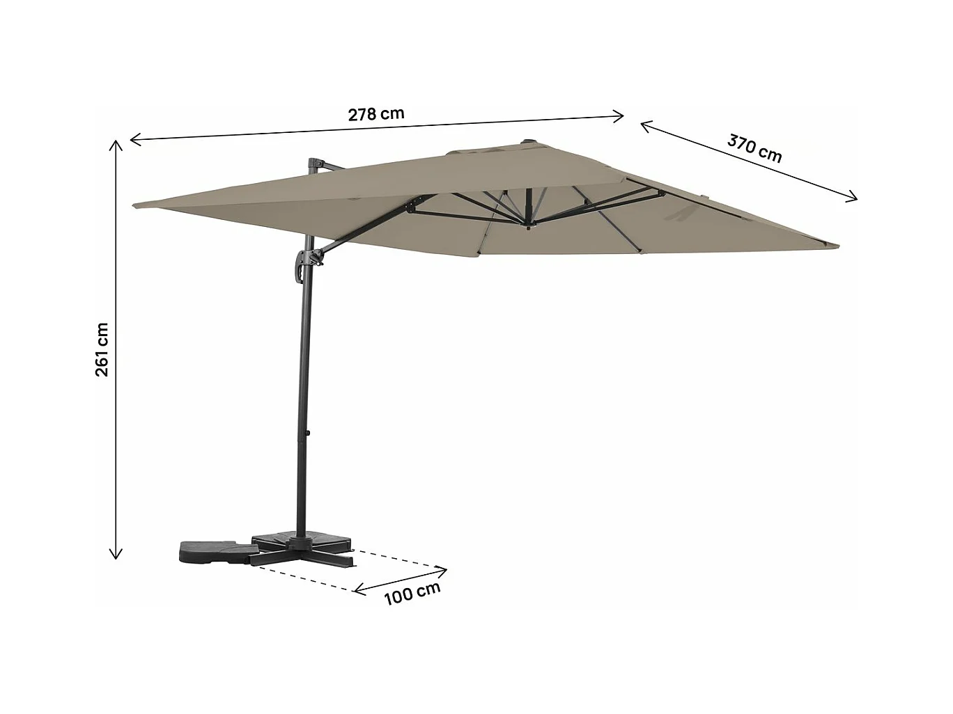 Sombrilla desplazada de aluminio "Sky 4" - 3 x 4 m - Taupe, resistente a la intemperie y a los rayos UV, con práctico sistema de ajuste