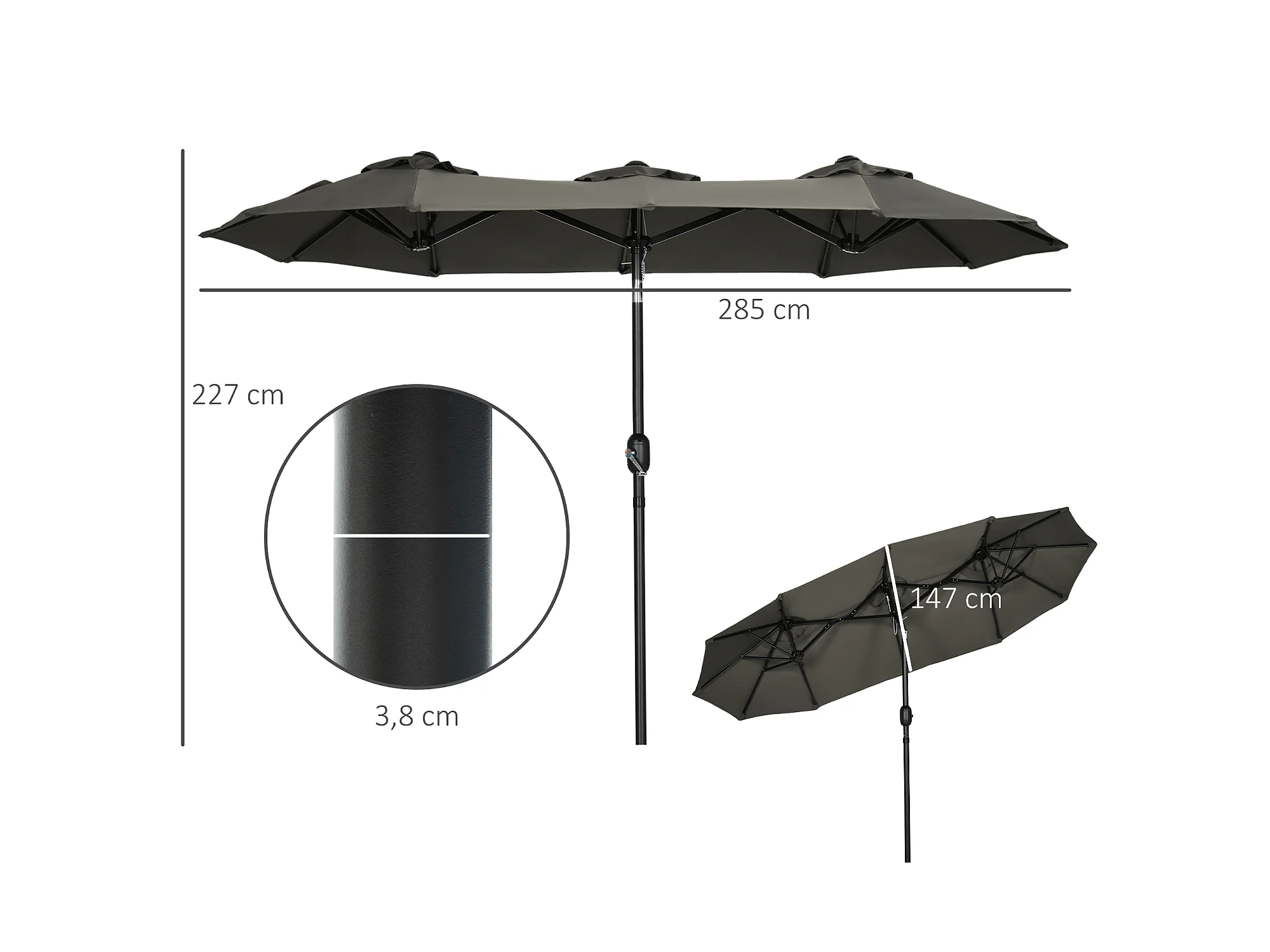 Sombrilla doble gris 285x147x227 cm Outsunny
