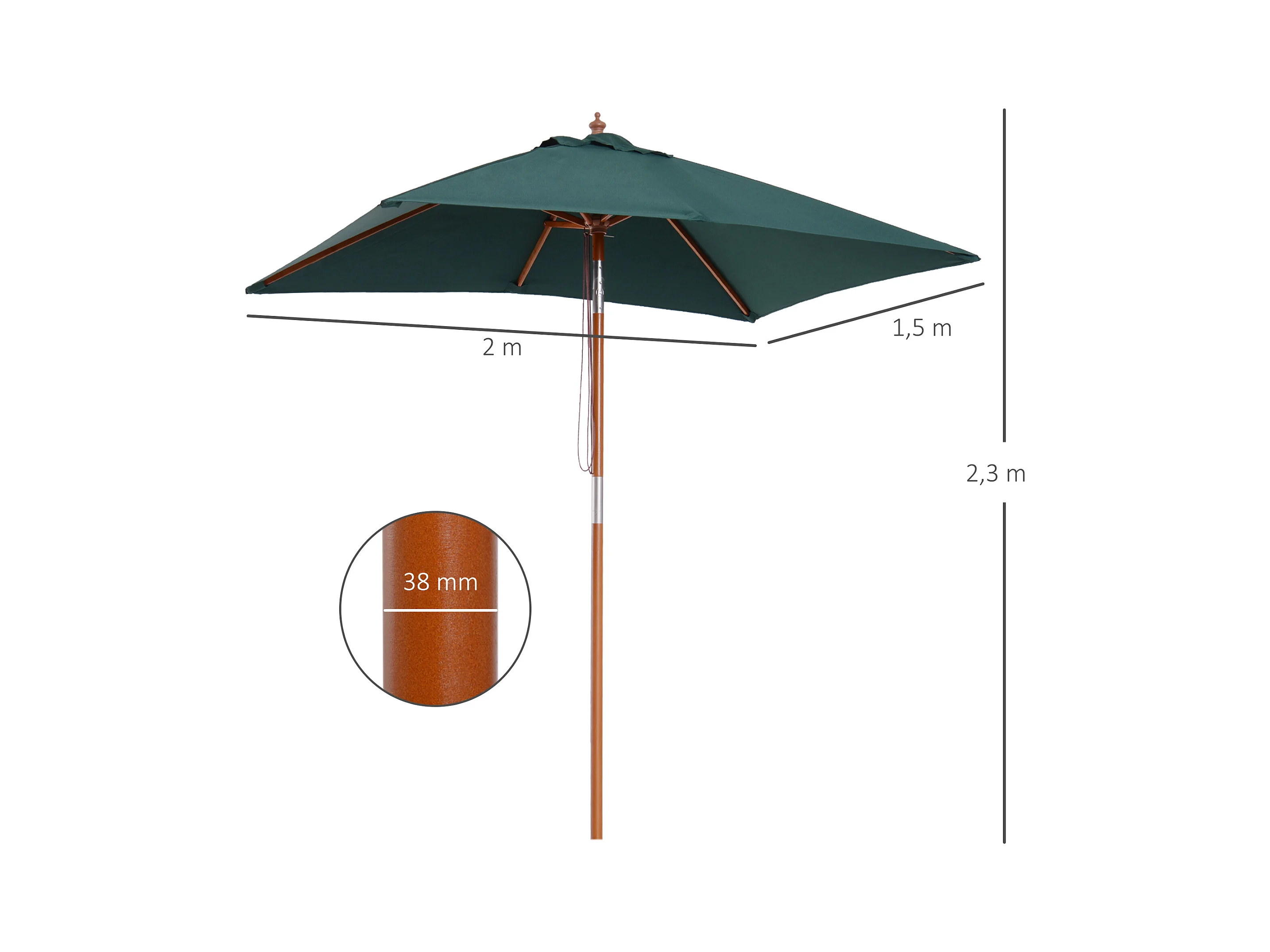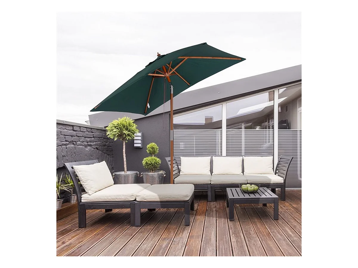 Sombrilla con palo de madera 200 x 300 cm Verde