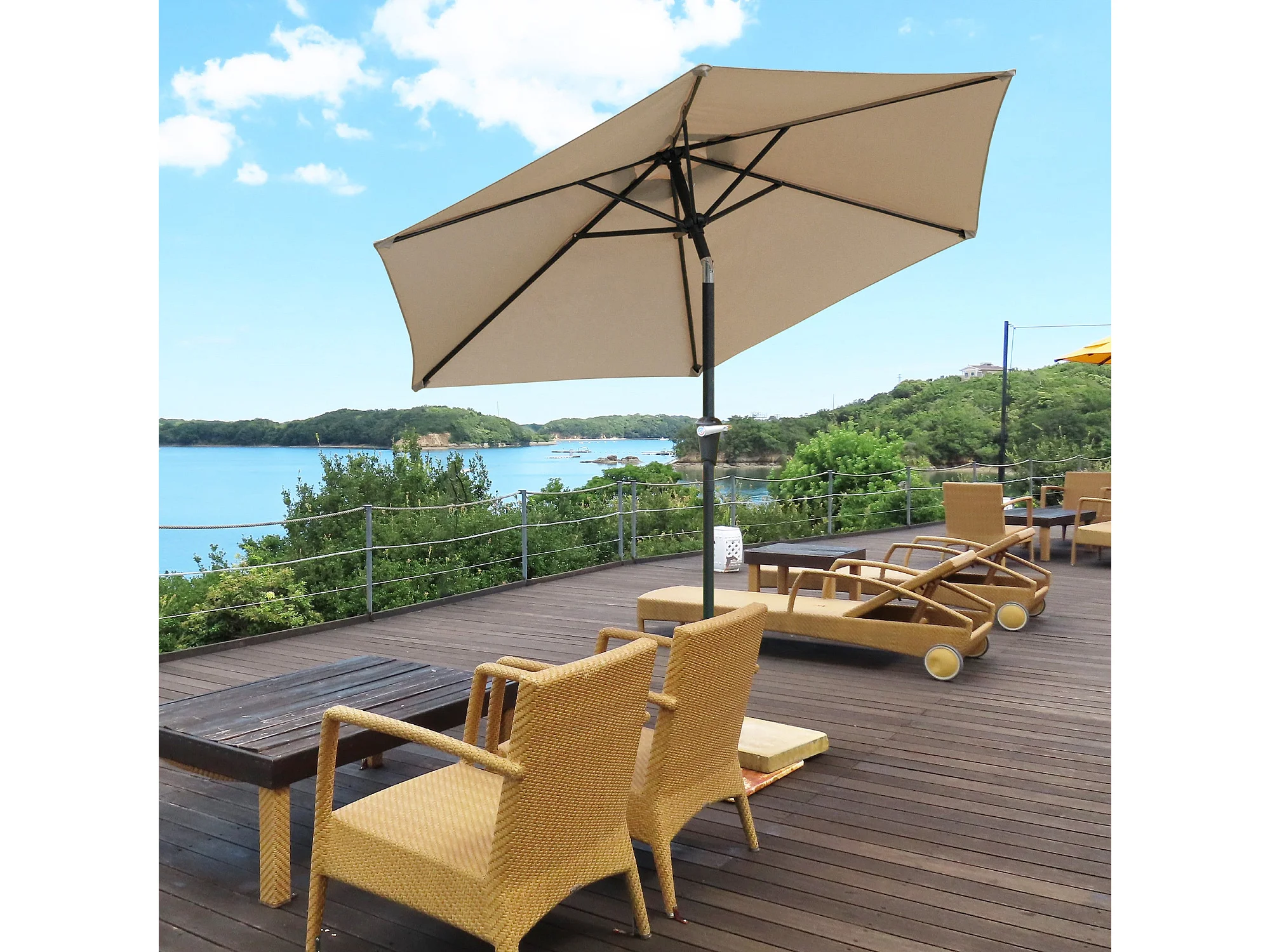 Sombrilla Portland Outsunny ángulo ajustable marrón claro Ø230x216 cm
