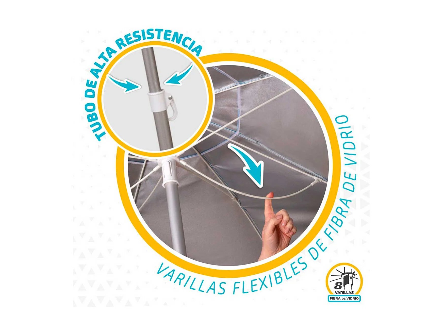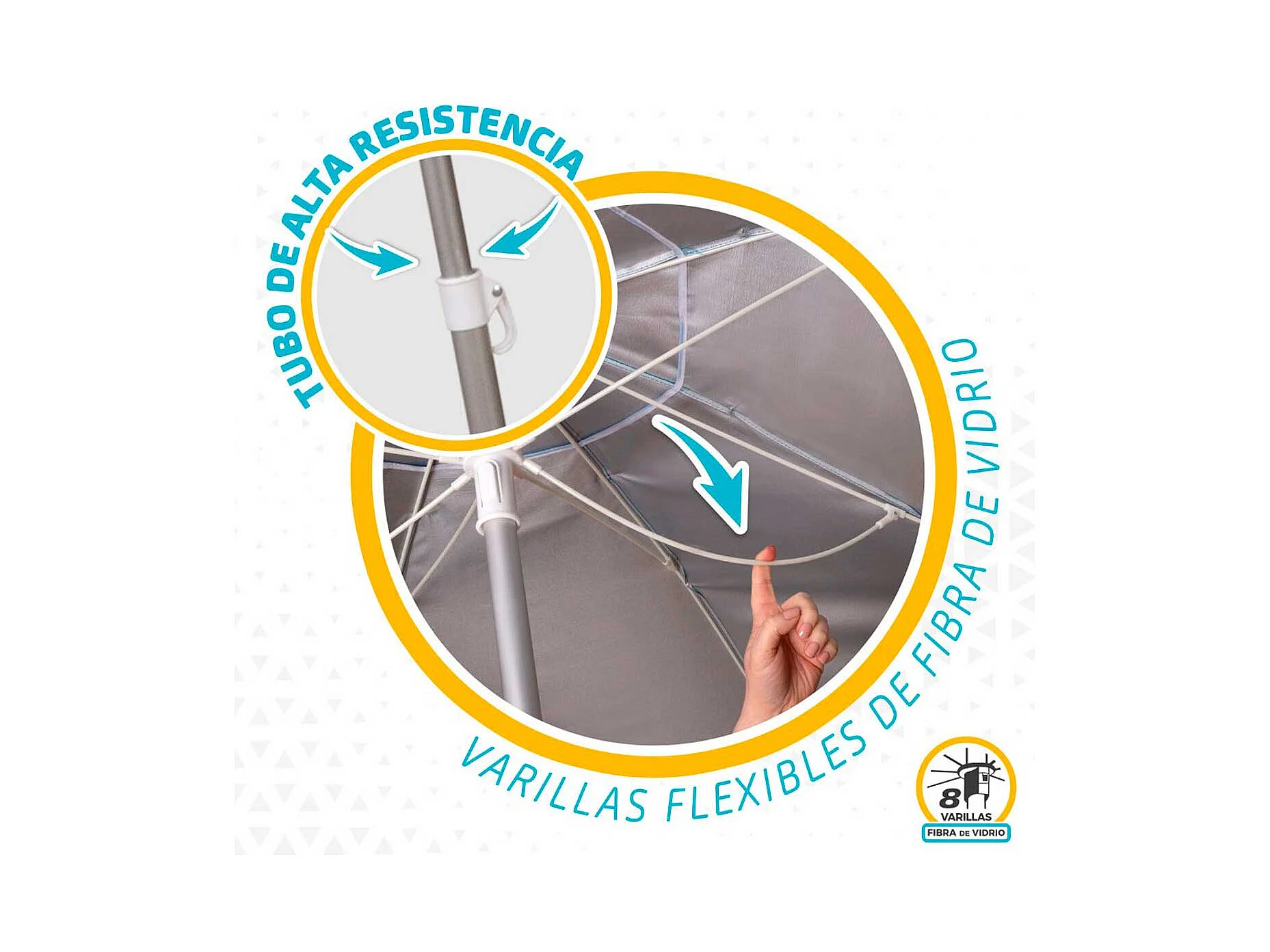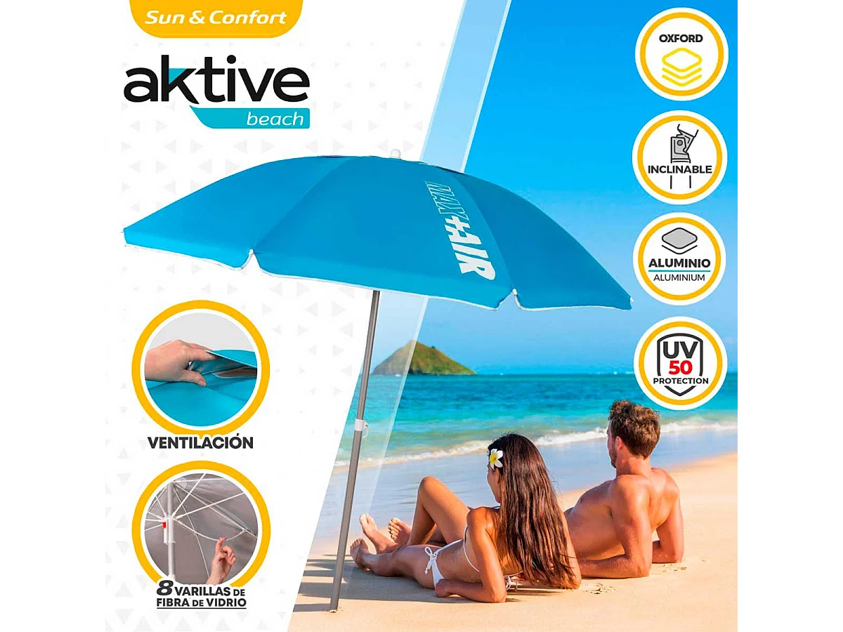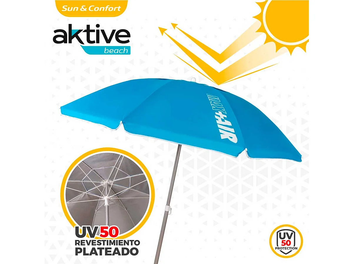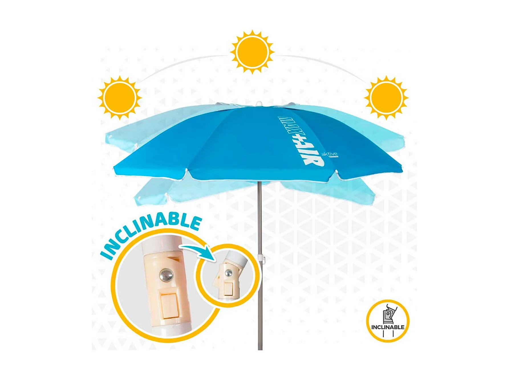 Sombrilla redonda Aktive Beach Air Max flexible protección UV50 azul Ø200 cm