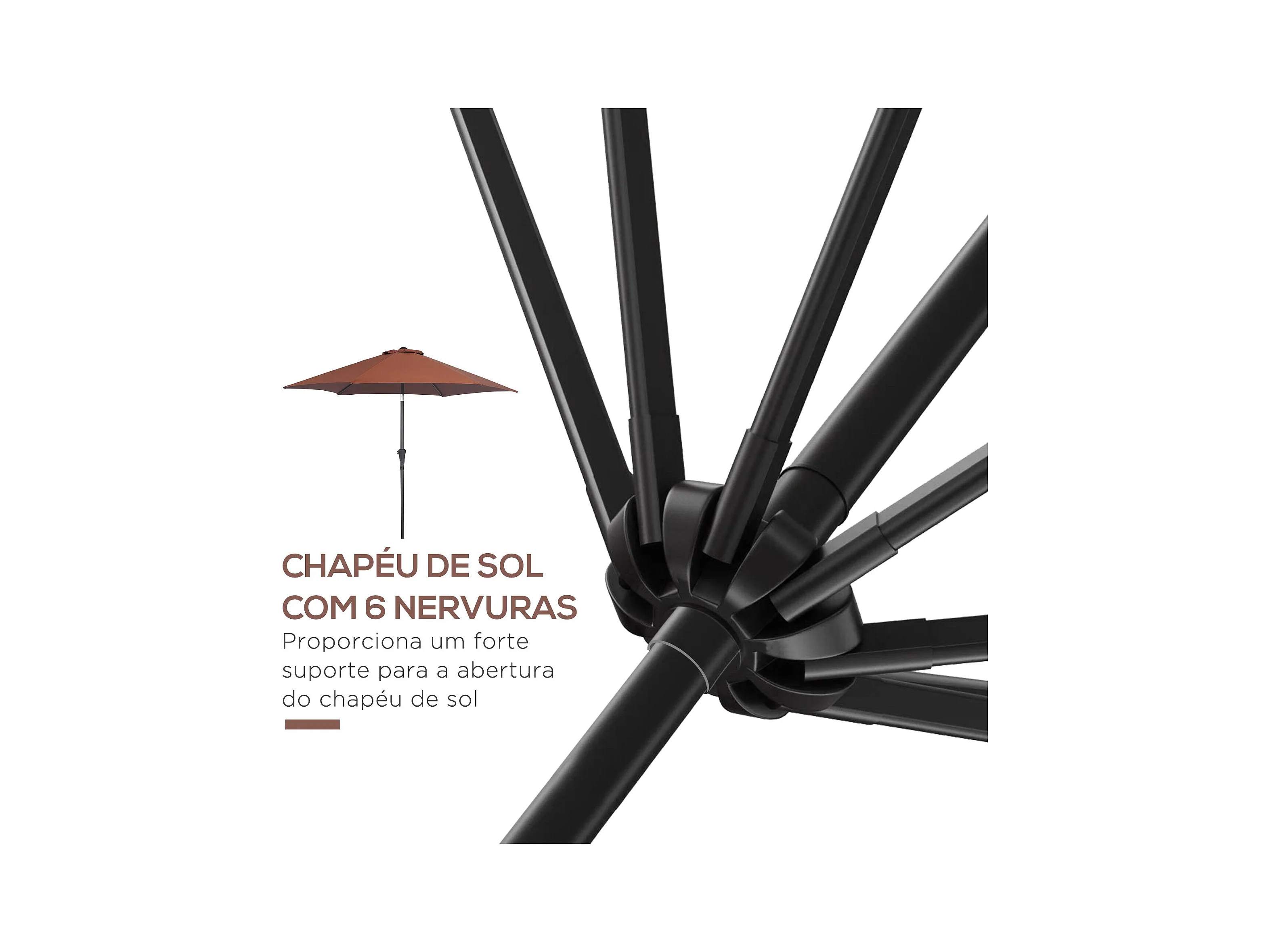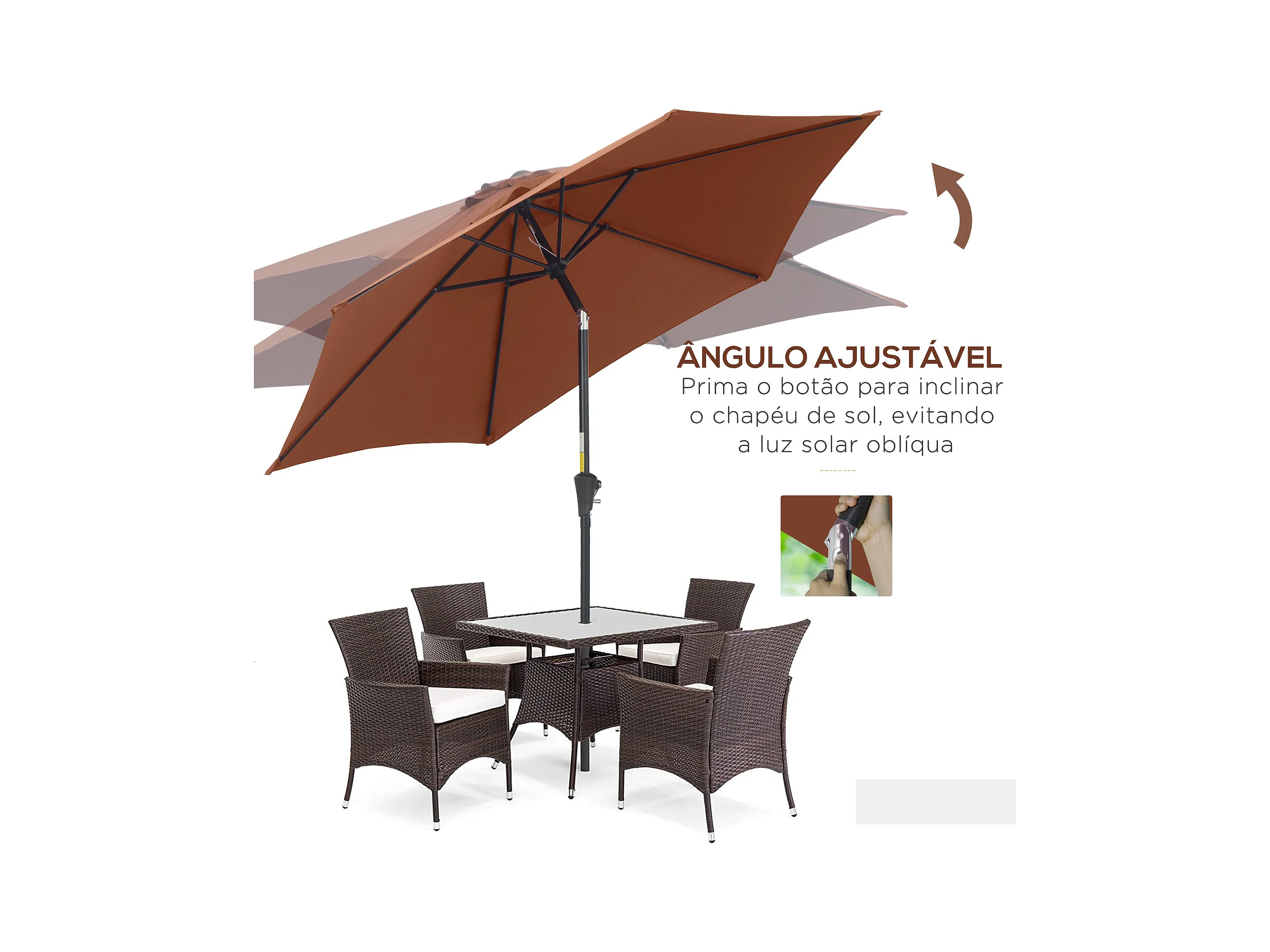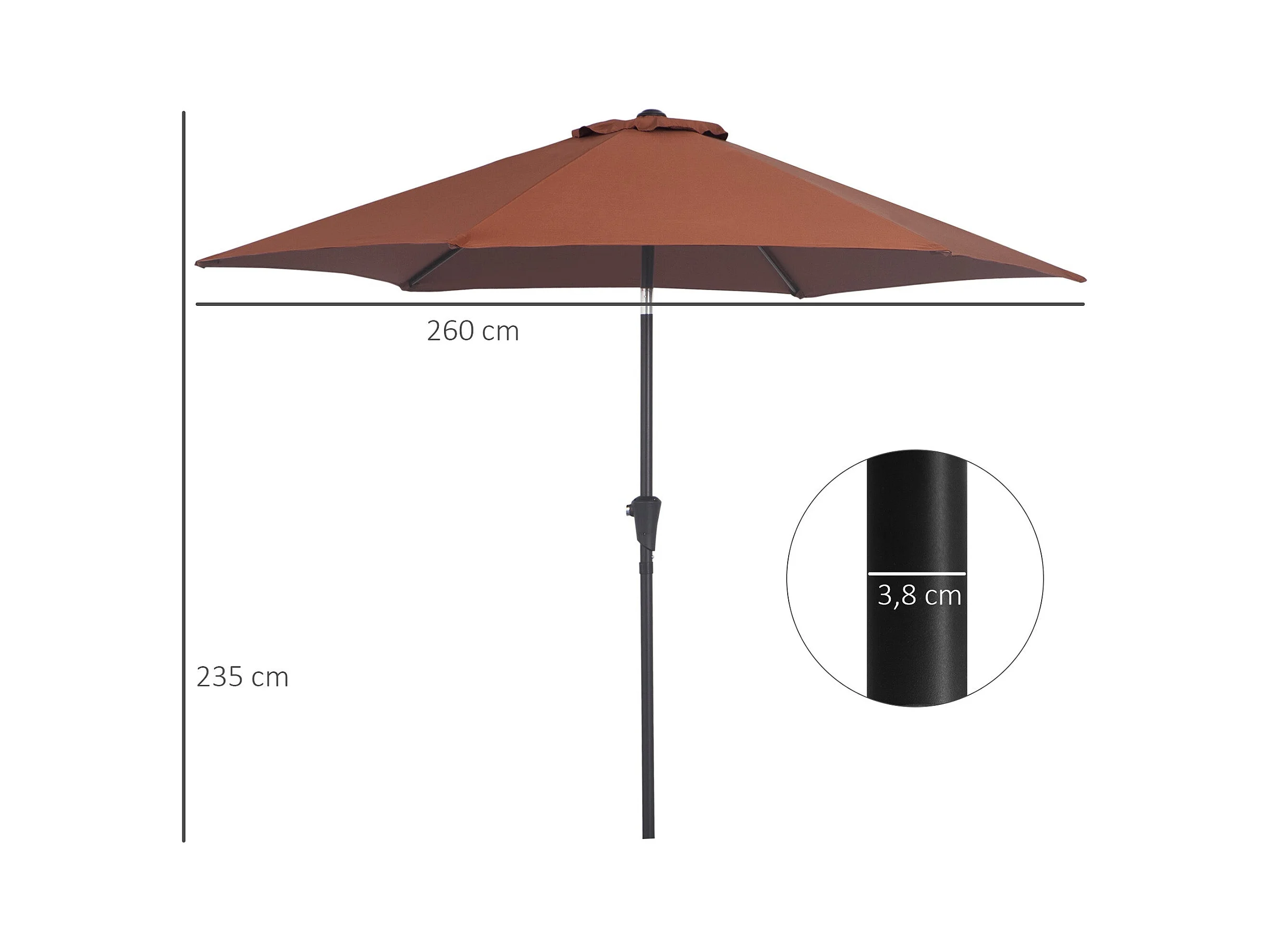 Sombrilla Toroni Outsunny reclinable + manivela marrón Ø260x235 cm