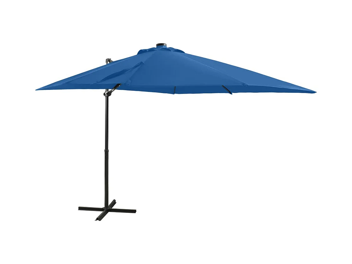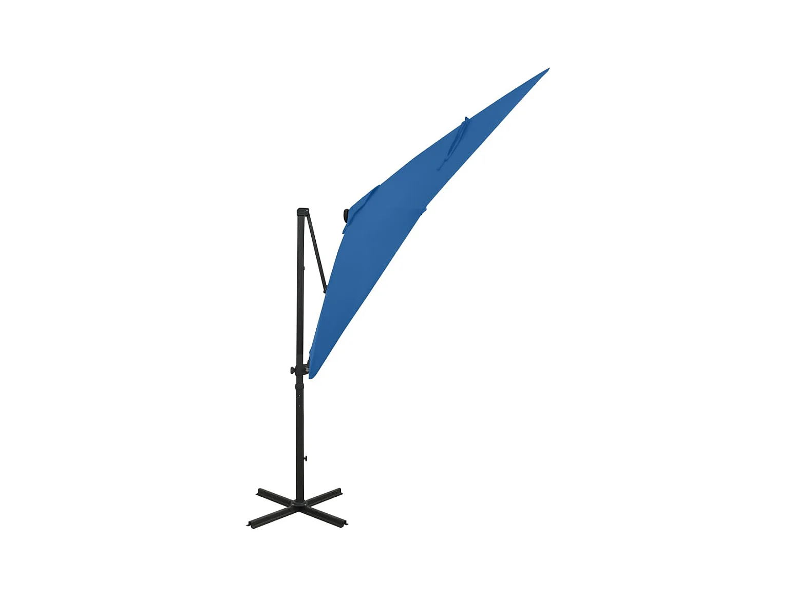 Sombrilla voladiza con luces LED y poste acero celeste 300 cm ES648477