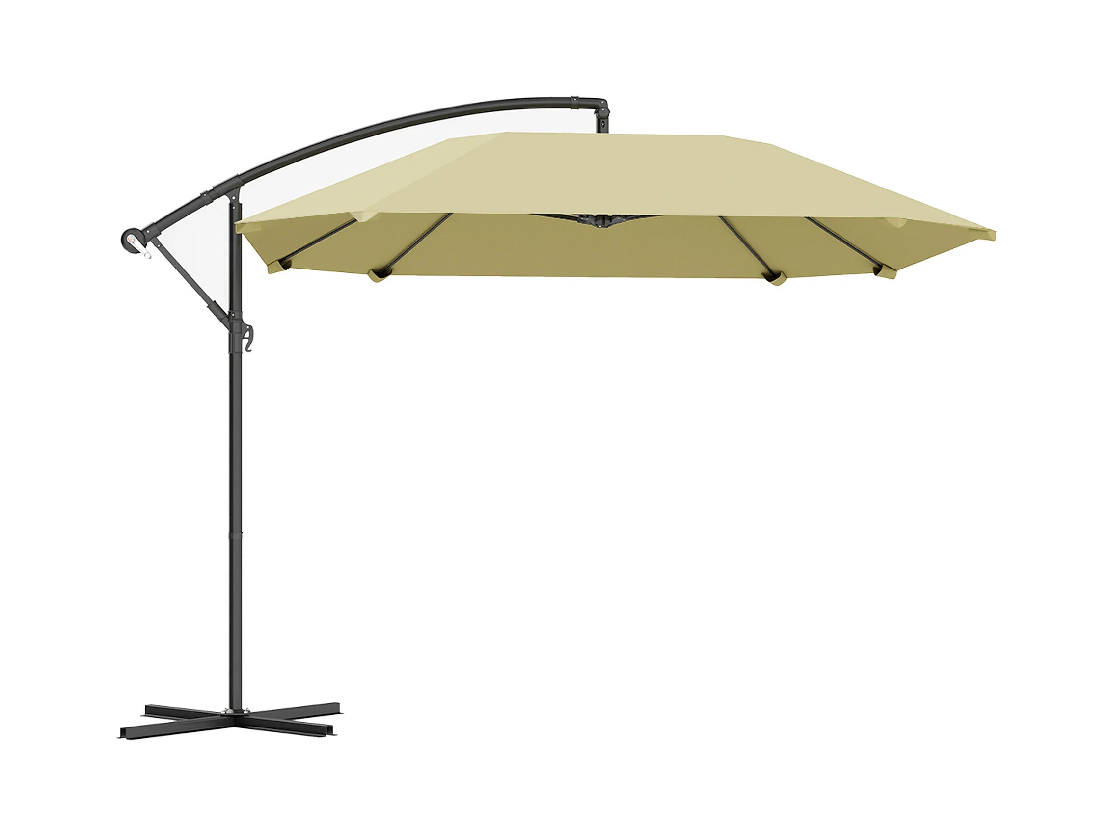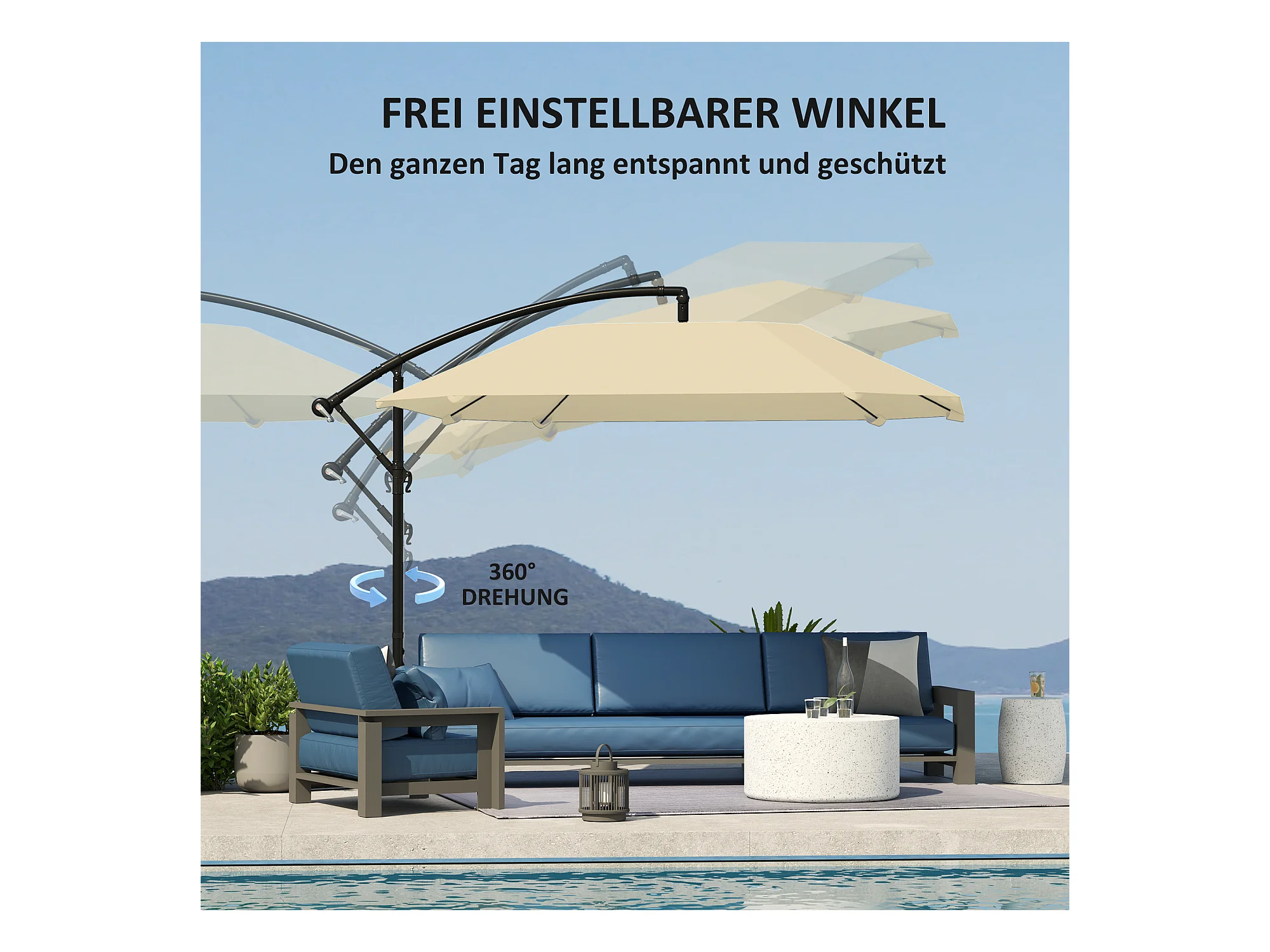 Sombrilla voladiza de aluminio de Ø 260 cm, impermeable, con manivela y base