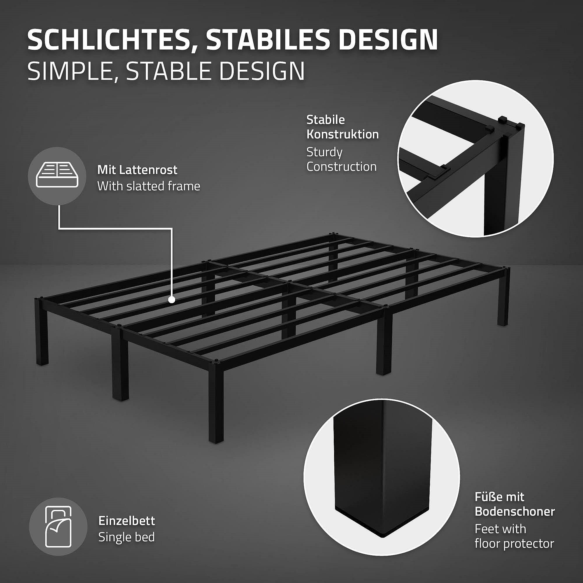 ML-Design Cama de Estructura Metalica 120x200 cm Sobre Marco de Acero Inoxidable con Somier