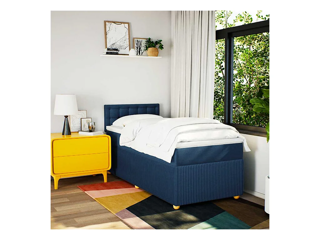 Somier de láminas con colchón Azul 90x200 cm Tela