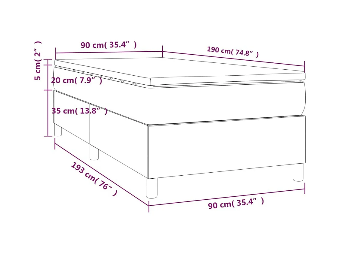 Cama con somier y colchón Tejido gris oscuro 90 x 190 cm