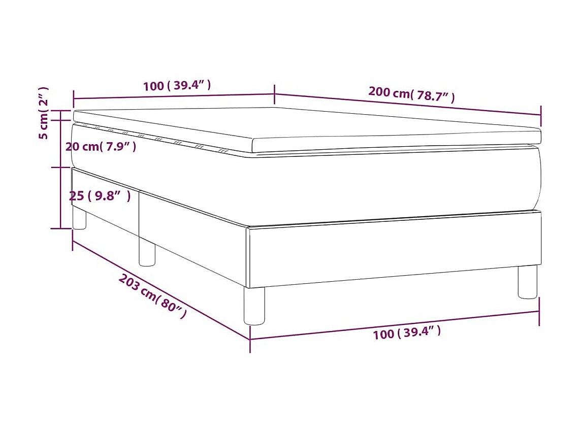 Estructura de cama sin colchón de tela gris oscuro 100x200 cm