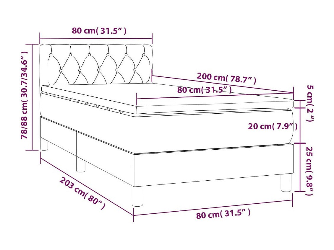 Cama de muelles en tela color topo, marrón y blanco de 80 x 200 cm