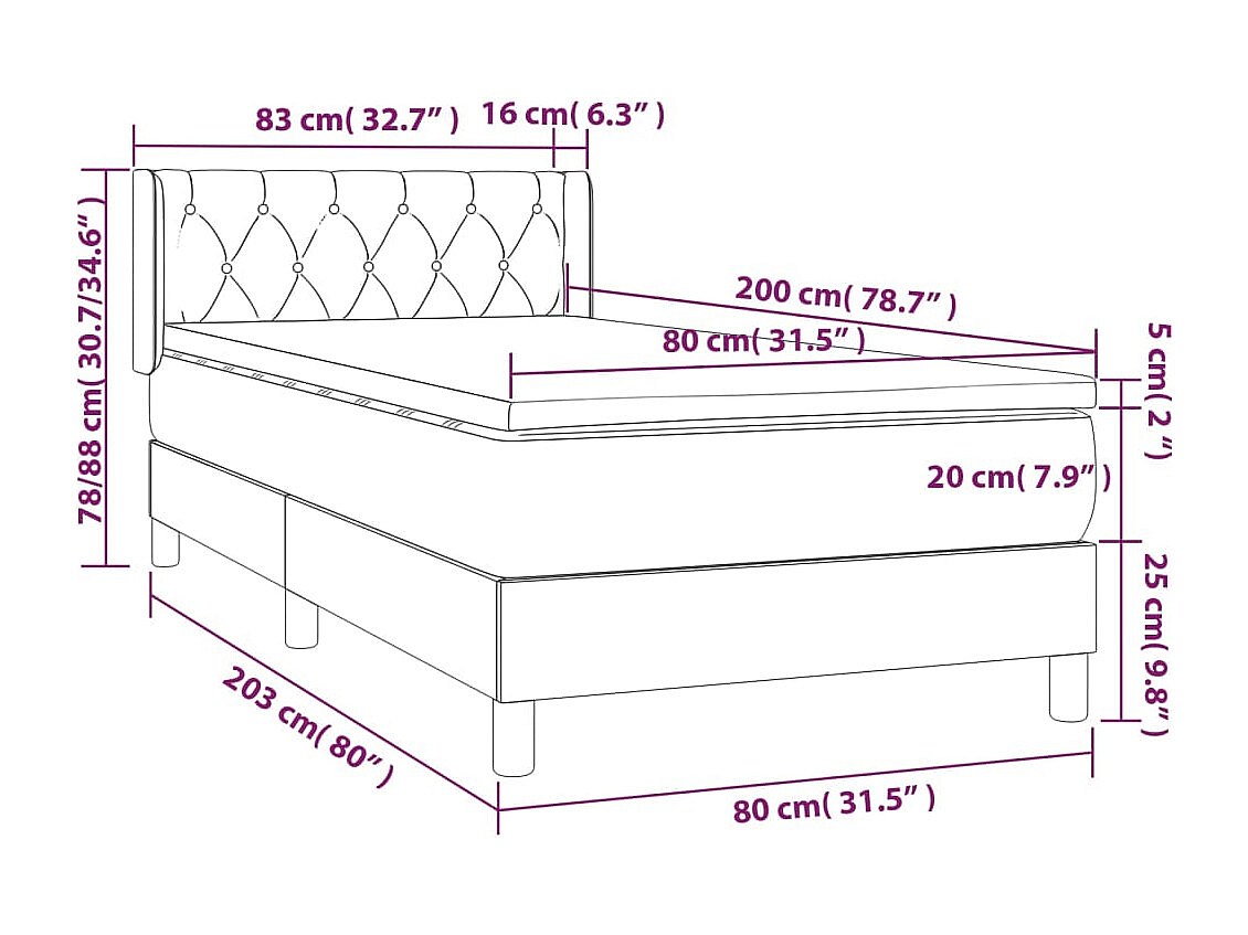 Cama de muelles en tela color topo, marrón y blanco de 80 x 200 cm